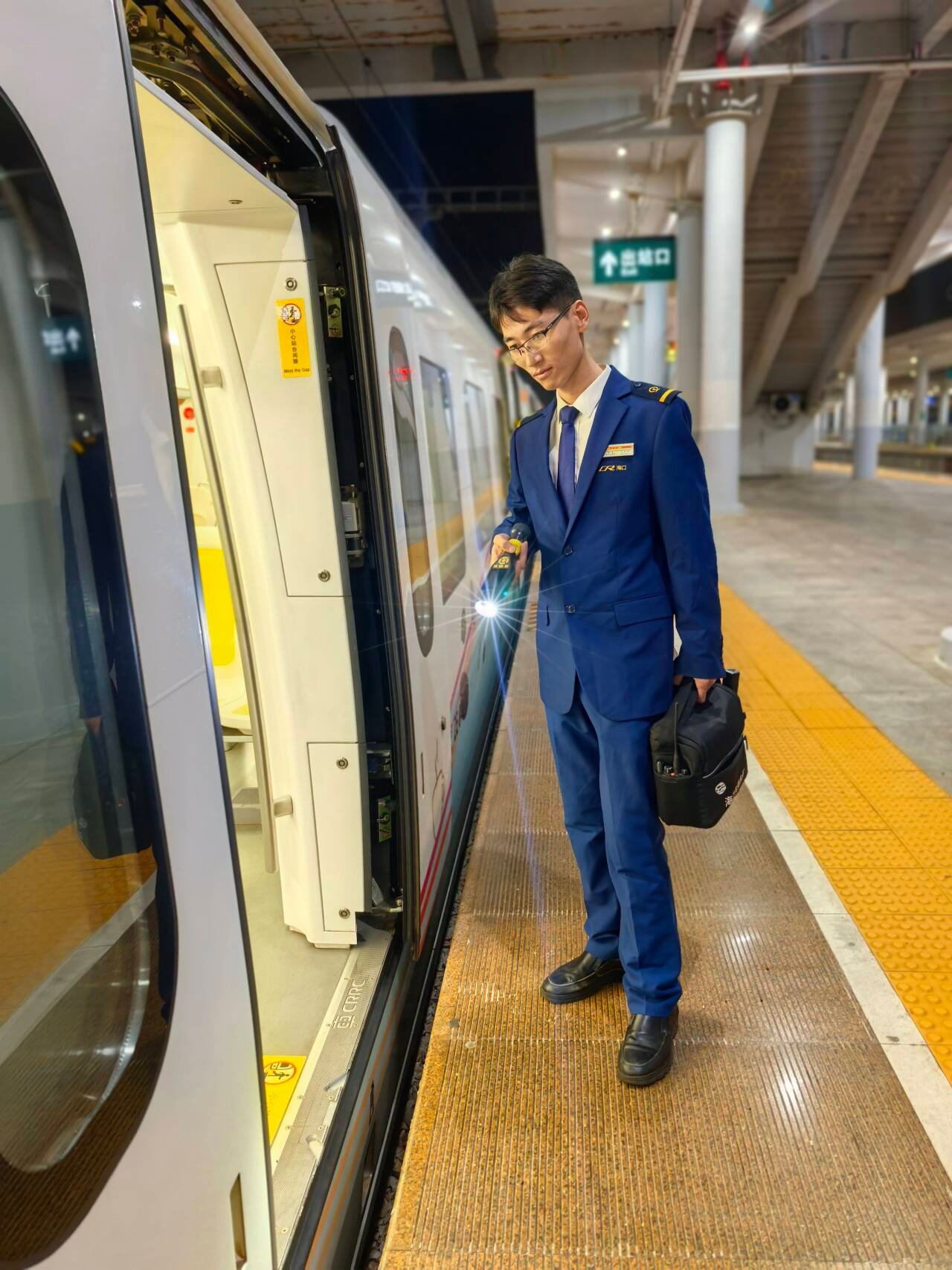 白天的车站,列车来来往往、川流不息,机械师们守在各个站点的工作岗位上,时刻关注着动车组的运行状态,做好列车衔接的保障工作,严格按照要求查看列车设备情况、对重点部位反复检查。遇到列车设备出点小问题,他们反应迅速、处理规范,凭过硬的本事为列车安全保驾护航。