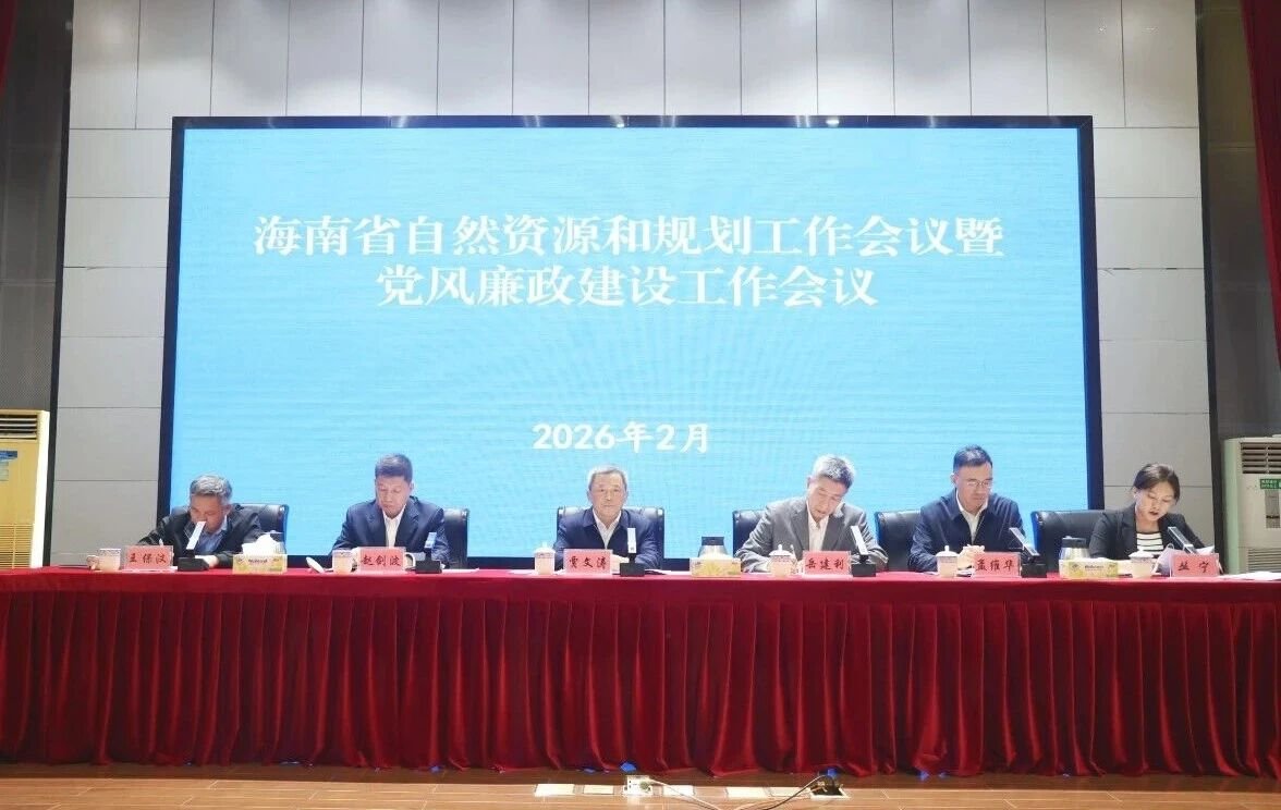 2月11日,全省自然资源和规划工作会议暨党风廉政建设工作会议在海口召开。会议坚持以习近平新时代中国特色社会主义思想为指导,深入学习贯彻党的二十届四中全会精神,认真落实省委八届八次全会和全国自然资源工作会议部署要求,传达学习省政府领导批示指示,总结“十四五”时期和2025年工作,研判“十五五”时期面临的形势和任务,部署2026年重点工作。海南省自然资源和规划厅党组书记、厅长贾文涛出席会议并讲话。