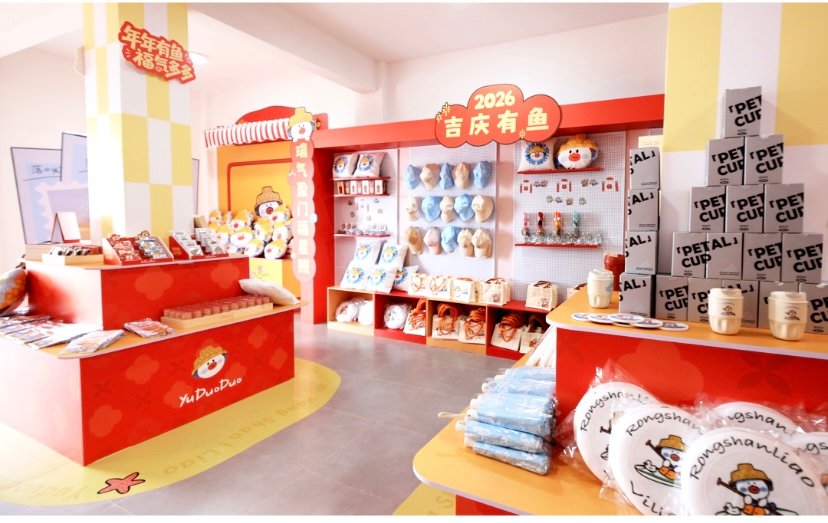 文创小院以“吉庆有鱼”“快乐加马”等主题精心布景,融合红灯笼、鱼形挂饰及原创卡通形象“鱼多多”等元素,营造出浓厚的渔村年味与沉浸式打卡氛围。
