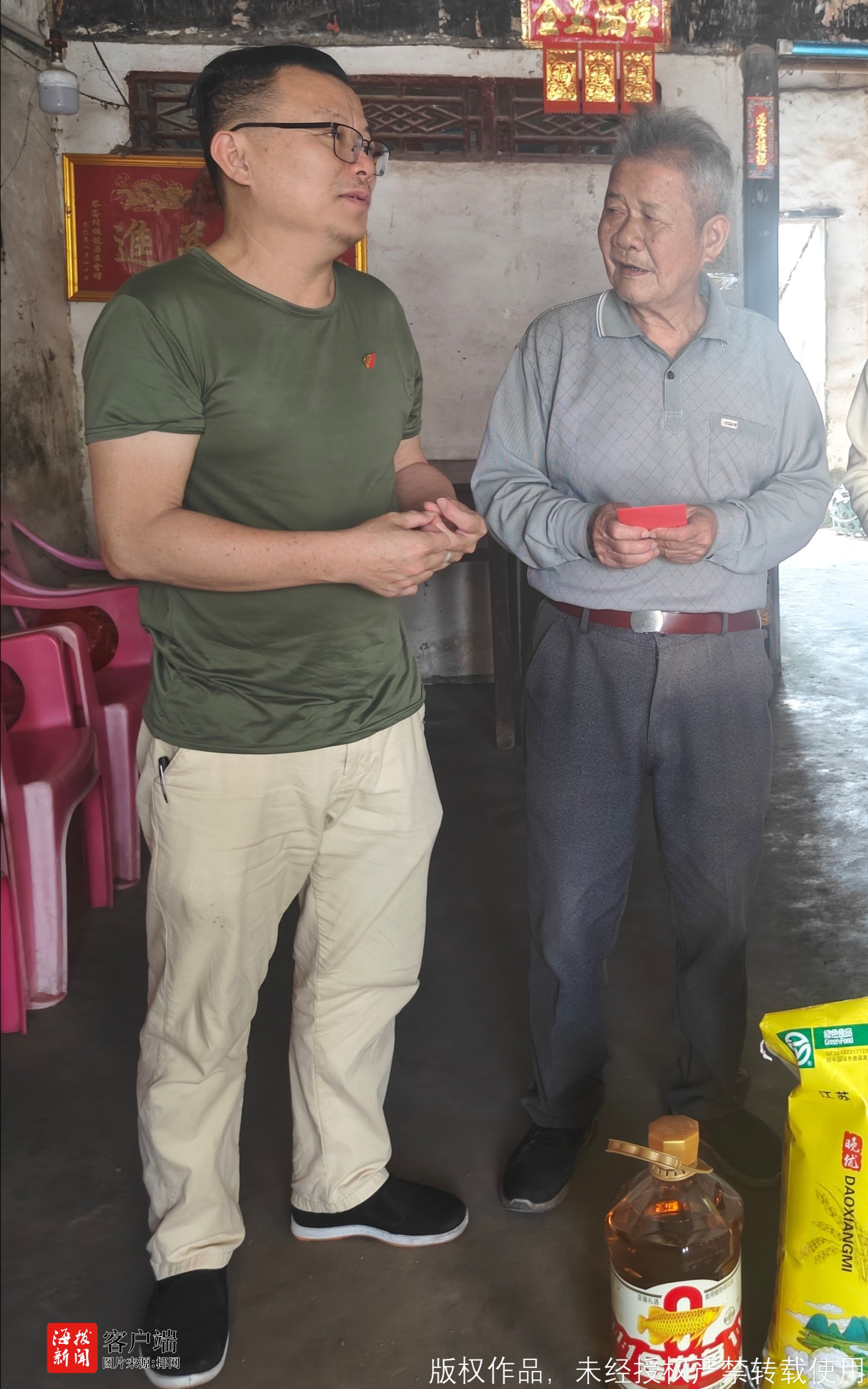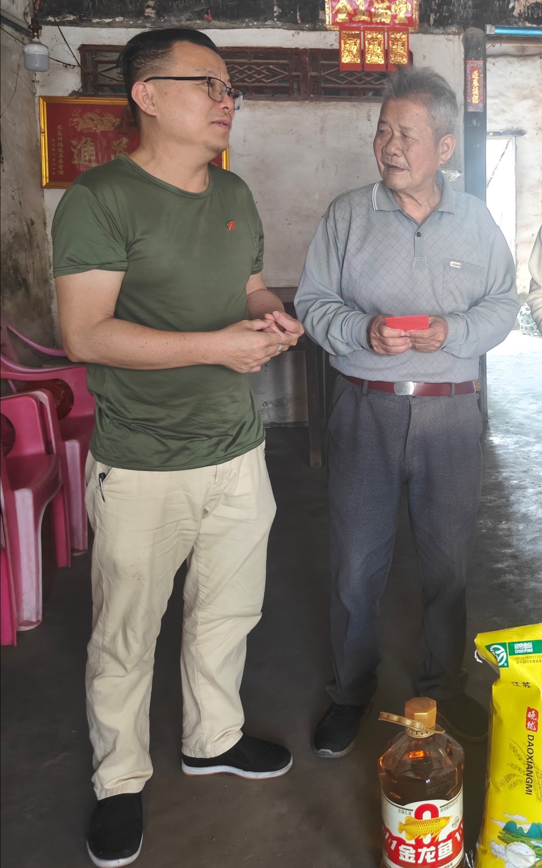 在海口市美兰区灵山镇晋文村委会文科村,党支部党员们看望中华人民共和国成立前入党的老党员黄玉香,关切询问她的身体状况与生活起居,对其在革命年代为党和国家事业做出的贡献致以崇高敬意。党员们还赴澄迈县仁兴镇岭仑村,慰问一位老党员五保户,详细了解其生活困难与需求,鼓励他保持乐观向上的生活态度。活动期间,党支部为老党员送去大米、食用油等生活物资及慰问金,同时致以诚挚的节日问候与新春祝福。