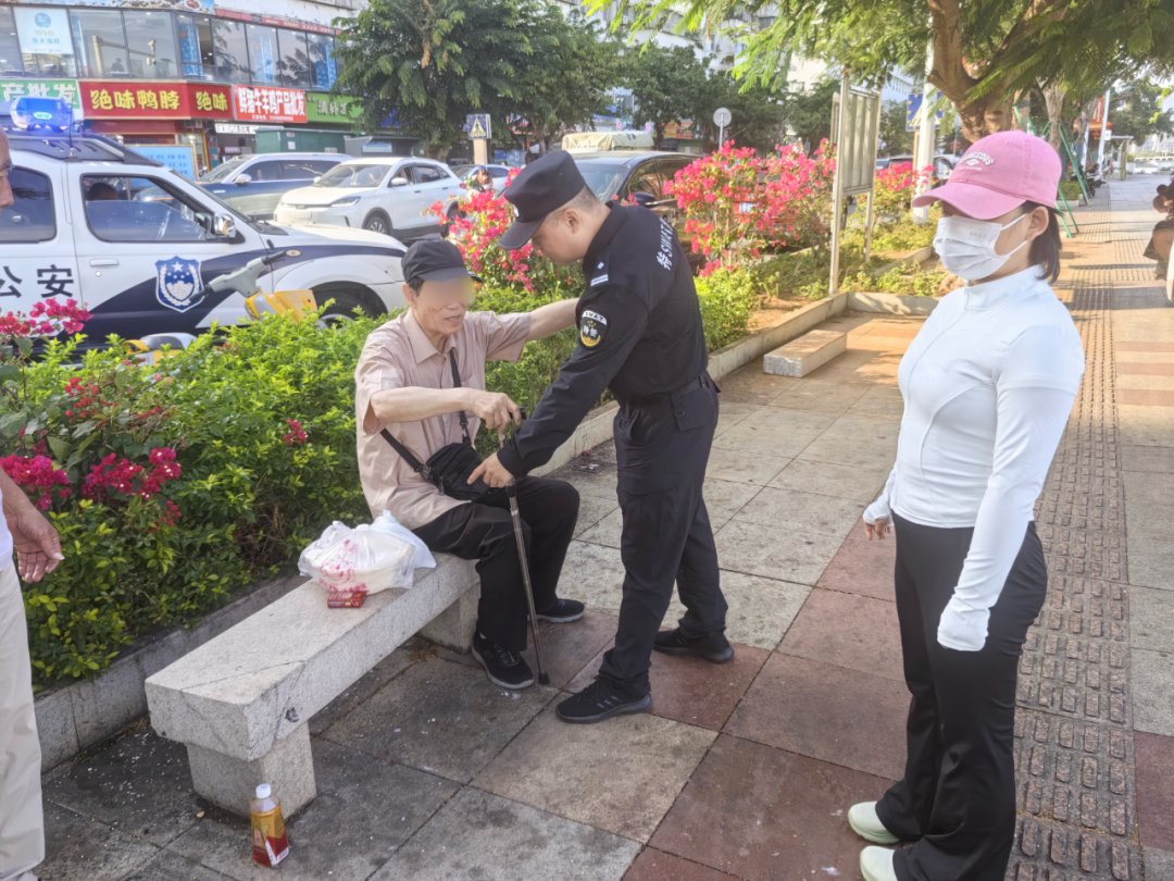 得知情况,三人迅速前往查看,只见一位八旬老人站在路边,神情焦虑,脚步蹒跚。卢卓赶紧上前将其搀扶至路边石椅上坐下,轻声询问其情况。原来,老人来自外省,节前陪着患病的妻子来到三亚住院治疗。眼看快过年了,他想着给住院的老伴做顿热乎饭,便独自出门买菜,谁知正赶上出行高峰,路上车流密集,腿脚不便,在路边站了许久也没打到车,心里越发着急。