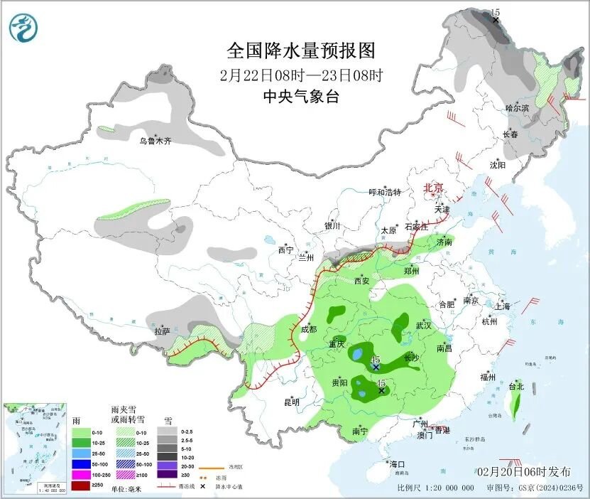 【降水预报】20日至22日,新疆北部、内蒙古中东部、东北地区中北部等地的部分地区有中到大雪或雨夹雪,局地有暴雪。23日,江淮、江汉、江南、华南及西南地区东部有小到中雨,其中江南和华南西北部的部分地区有大雨,局地并伴有雷暴大风和雷电;西北地区东部、黄淮等地的部分地区有雨转雨夹雪或小到中雪。25日至27日,黄淮及其以南地区还将有一次大范围降水天气过程。
