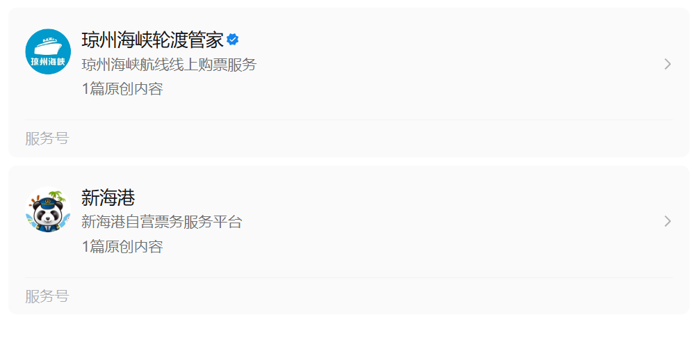 2.关注官方渠道:重点关注“新海港”“琼州海峡轮渡管家”微信服务号、“轮渡管家”小程序/APP等官方平台,停复运信息将通过以上平台第一时间发布。您也可拨打海口秀英港、新海港客服热线咨询:0898-9693666。