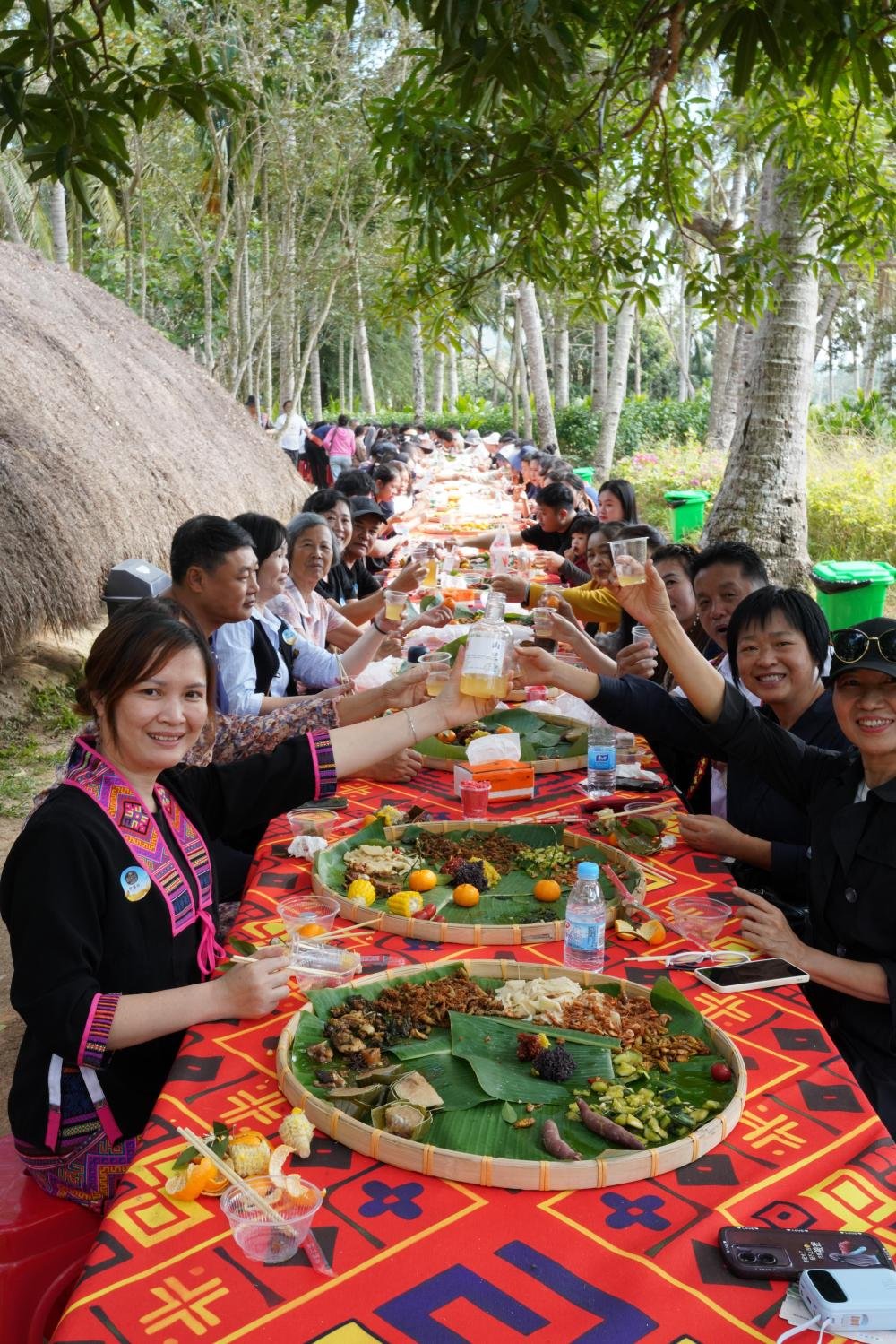 游客在海南省东方市江边乡白查村共享黎族长桌宴。新华社发(王隆权 摄)