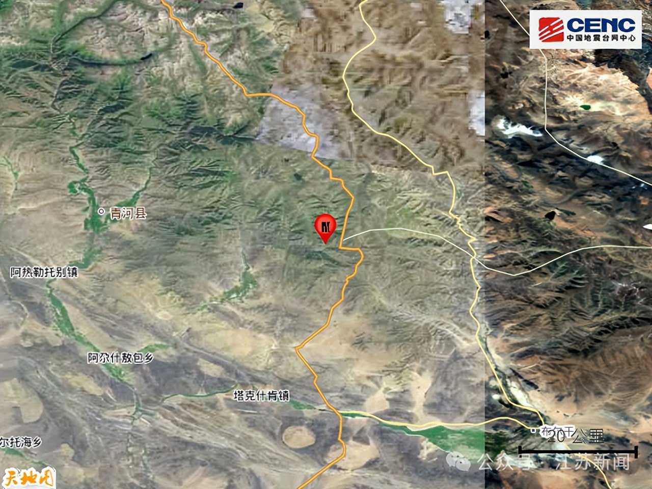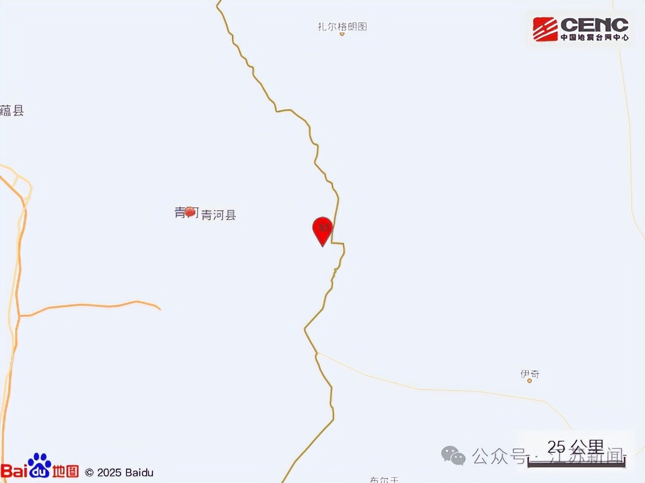 附近村镇:本次地震周边5公里内的村庄有冬布特、乌斯根,20公里内无乡镇驻地分布,50公里内的乡镇有查干郭勒乡、塔克什肯镇、青河镇。