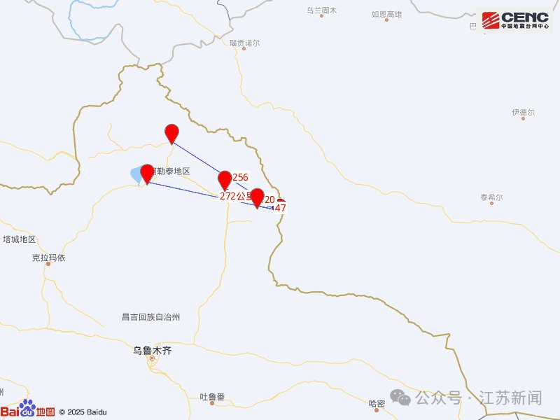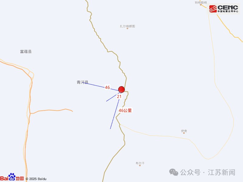 周边县城:震中距青河县47公里、距富蕴县120公里、距阿勒泰市256公里、距福海县272公里、距北屯市253公里、距乌鲁木齐市408公里。