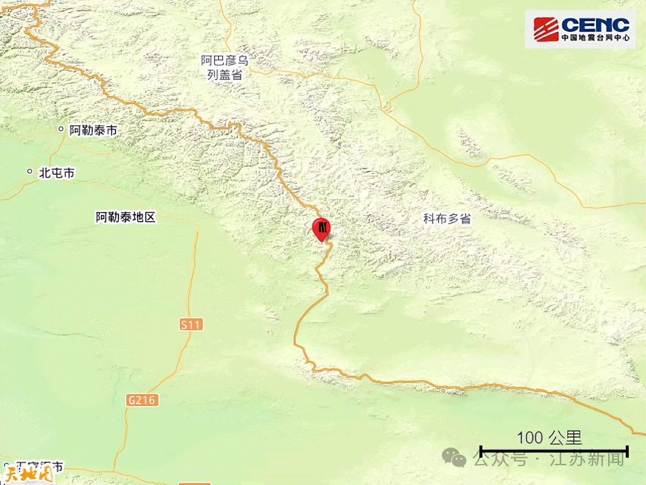 新疆阿勒泰地区发生4.0级地震
