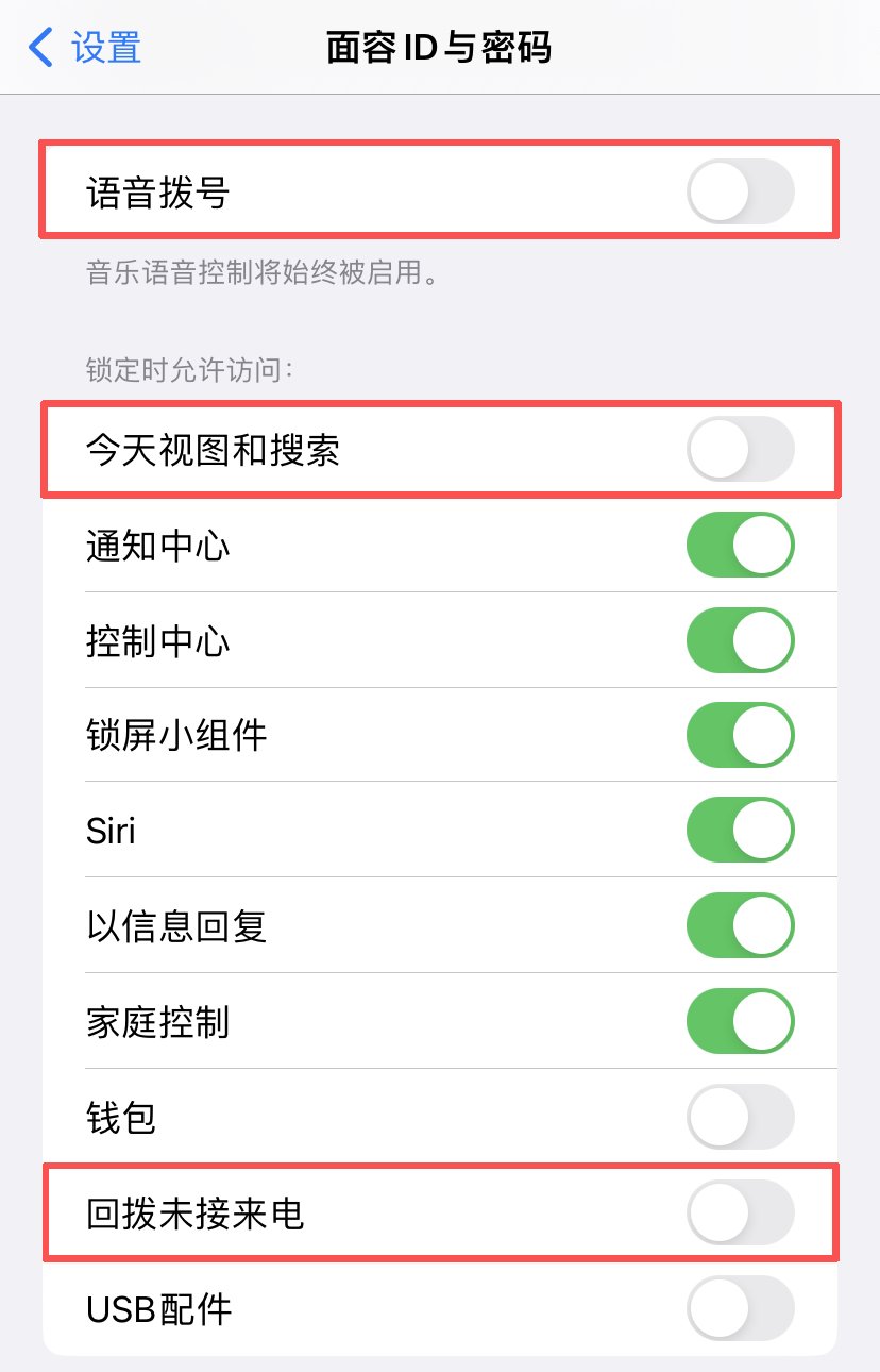 Apple专家还建议前往「设置-面容ID与密码」界面,关闭以下几个选项,如果还是异常,可再联系升级到工程部调查。