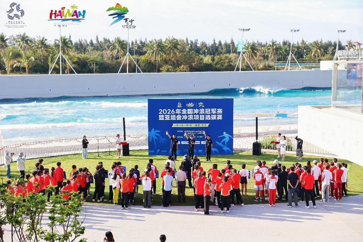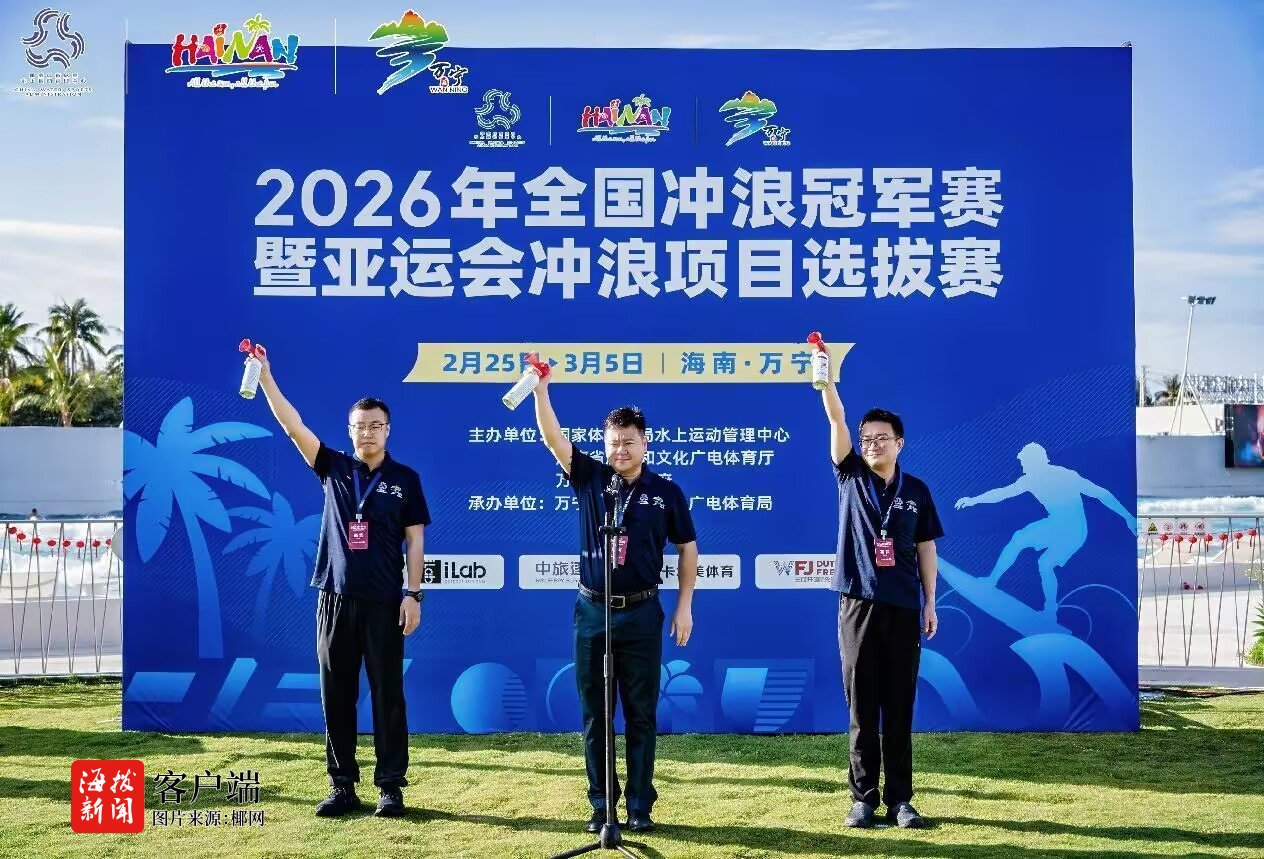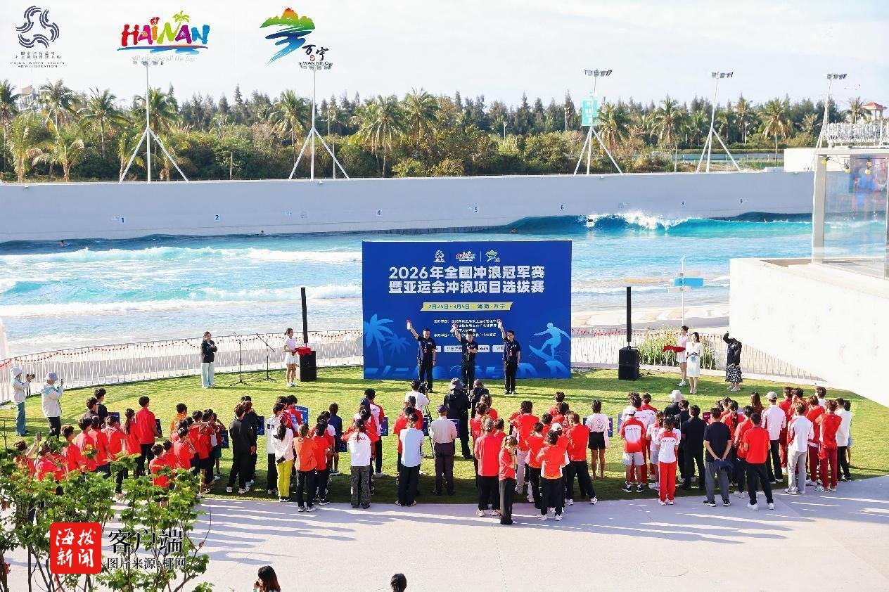 商报全媒体讯(椰网/海拔新闻记者 张艺)2月26日,2026年全国冲浪冠军赛暨亚运会冲浪项目选拔赛在海南万宁日月湾中旅逐浪度假区激情启幕。该赛事将持续至3月5日,共吸引全国21支代表队、近200名顶尖冲浪运动员齐聚一堂,将在多个项目中展开激烈比拼,争夺荣誉。国家体育总局水上运动管理中心运动二部项目主管胡海平等出席。