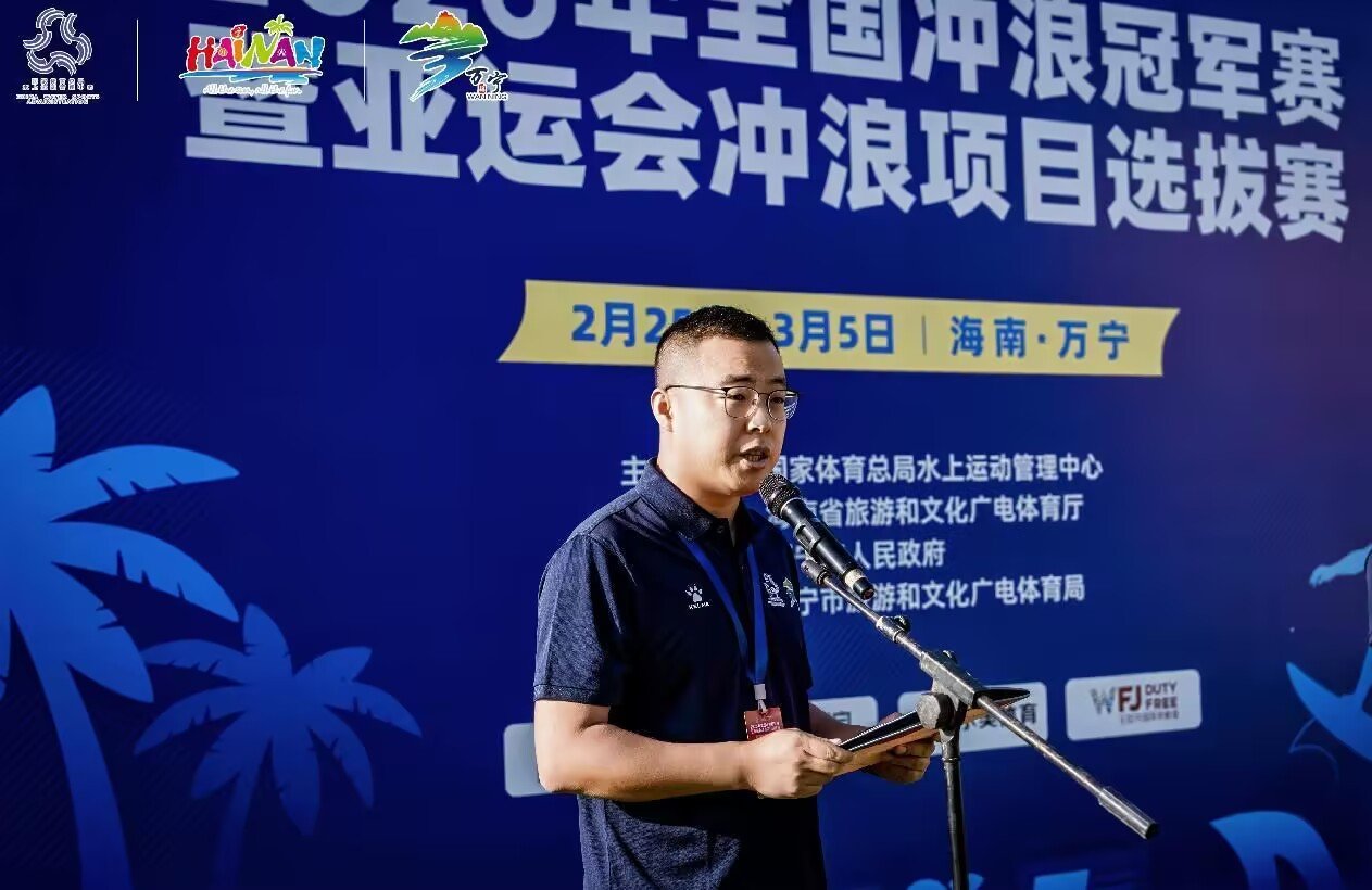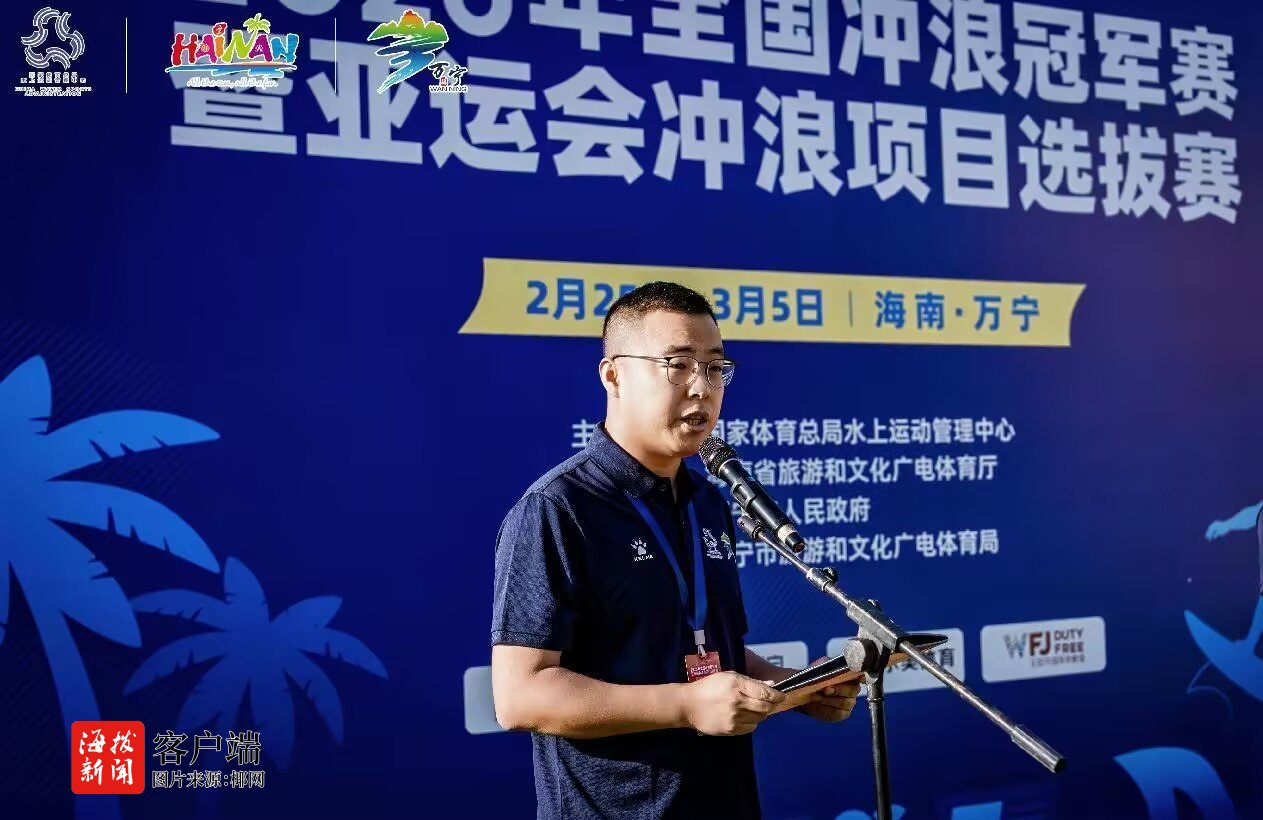 万宁市旅游和文化广电体育局副局长党福俭致表示,近年来万宁锚定“世界冲浪胜地”目标,以冲浪为核心,深度融合侨乡文化、雨林生态及免税消费等资源,全力构建“冲浪+”业态。他指出:“本次赛事不仅是健儿们切磋技艺的竞技场,更是选拔亚运英才的关键平台,也是万宁深化‘体育+旅游+文化+消费’融合的重要契机。依托海南自贸港建设优势,我们将以顶级赛事为引,完善产业链条,打造具有全球竞争力的冲浪产业生态圈。”