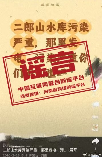 详情:近日,有网民发布视频称,“河南桐柏县二郎山水库因发电导致水库污染严重”,引发网友关注讨论。经属地政府、水利、生态环境等相关部门核实,二郎山水库属于中型水库,以防洪、灌溉为核心,未承担发电工作,周边无污染问题。该内容为不实信息。