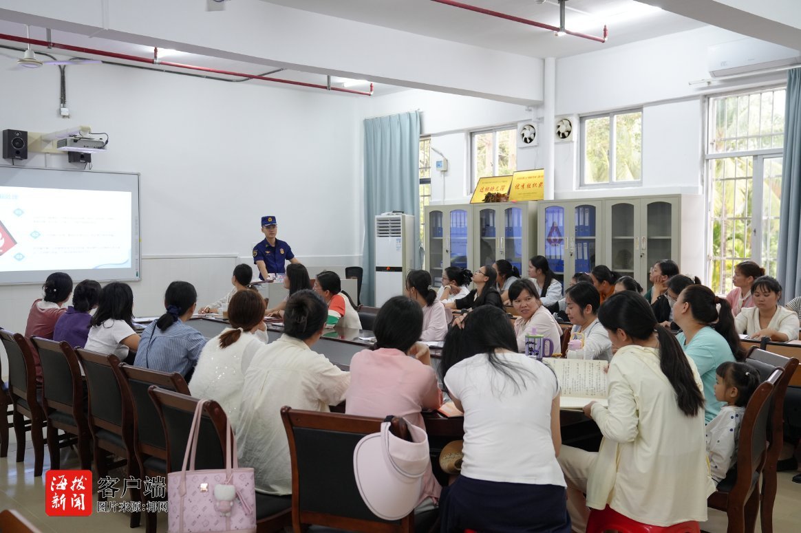 商报全媒体讯(椰网/海拔新闻记者 李兴民 通讯员 岳彦名 田子安 摄影报道)2月27日,保亭消防救援大队的宣讲员们走进加茂镇中心幼儿园,给老师们送上一堂消防安全培训课。不过这次培训课有点特别,现场多了一位“编外学员”,一位老师带来自家的孩子,全程瞪着大眼睛看得入神。