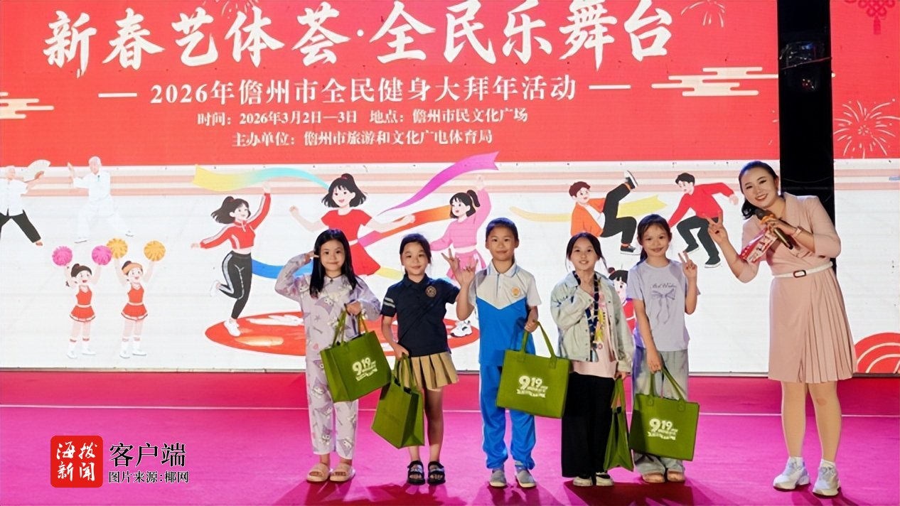 商报全媒体讯(椰网/海拔新闻记者 黄桂风)3月2日,由儋州市旅游和文化广电体育局主办的“新春艺体荟 全民乐舞台”2026年儋州市新春全民健身活动在儋州市文化广场举行,以“金鞍贺岁·福满儋洋”为主题,将传统健身、民俗文化与市民互动融为一体,现场人头攒动、掌声不断,在运动的激情与欢笑的暖意中,以健康活力的方式欢度新春佳节。
