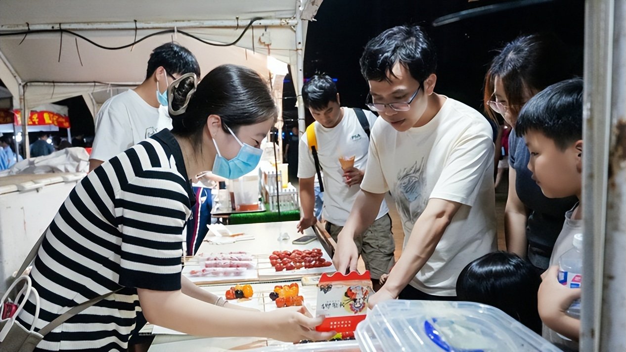 活动现场还有美食展出活动,各类美食香气四溢:焦香酥嫩的臭豆腐,滋滋冒油的烤肉,嚼劲十足的牛肉干,还有清爽甜蜜的冰淇淋,多样美味各有特色,吸引着食客们驻足品尝、大快朵颐。