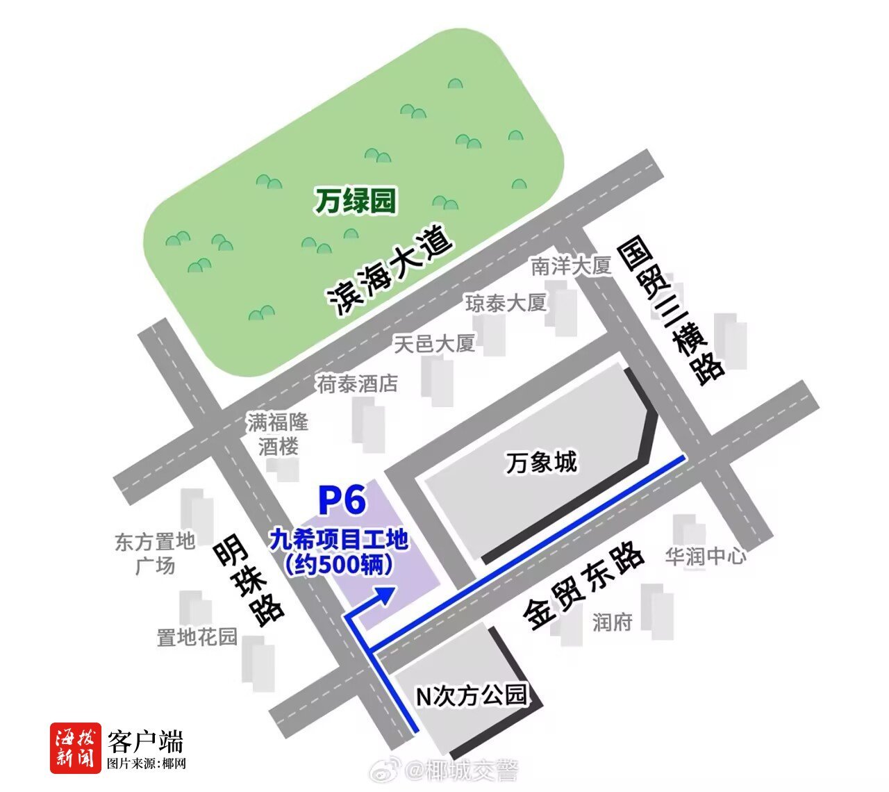 海口交警特别提醒,万绿园周边停车位有限,节日期间易出现饱和,建议市民非必要不开车,选择更便捷的绿色出行方式。