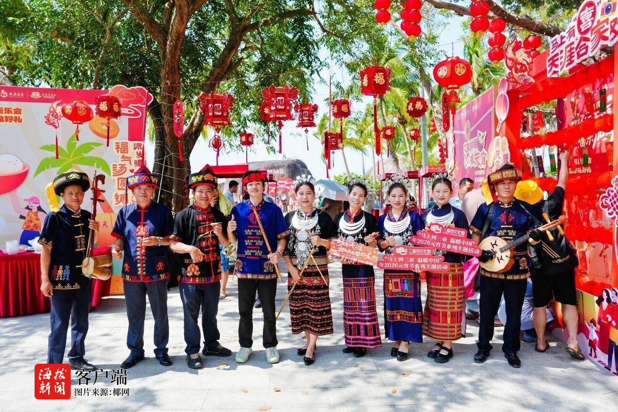 元宵灯谜会现场,花灯映椰林,市民游客踊跃参与猜谜挑战,在脑力比拼中感受传统灯谜文化的乐趣;汤圆铺前人头攒动,免费向游客供应汤圆,入口软糯香甜,传递出团团圆圆的节日祝福。现场还设置了锦绣天涯汉服游园、花鼓纳福互动等特色环节,海南非遗传承人现场演绎黎族民歌、竹木器乐等,十余幅乡土年画作品在椰林间展出,让游客近距离感受海南本土文化的独特魅力。