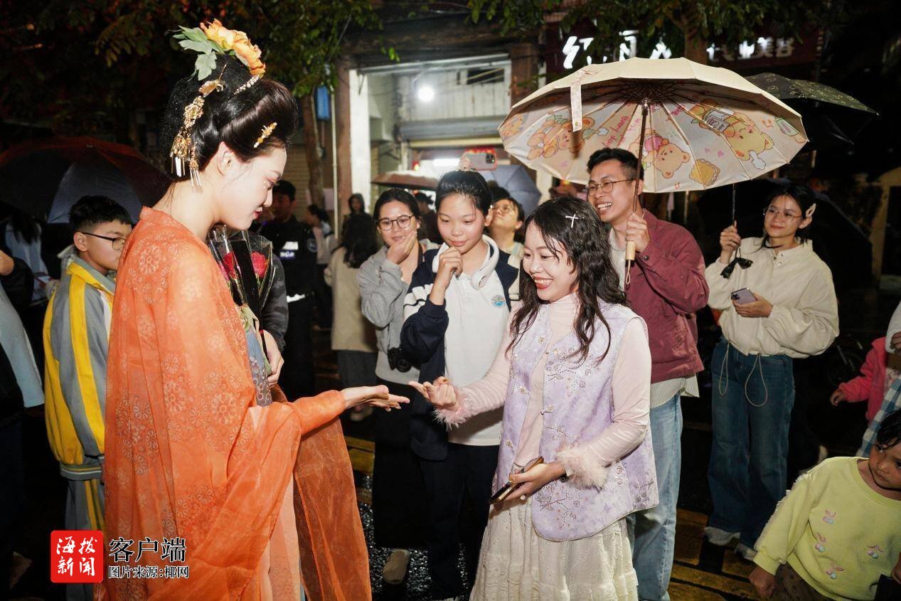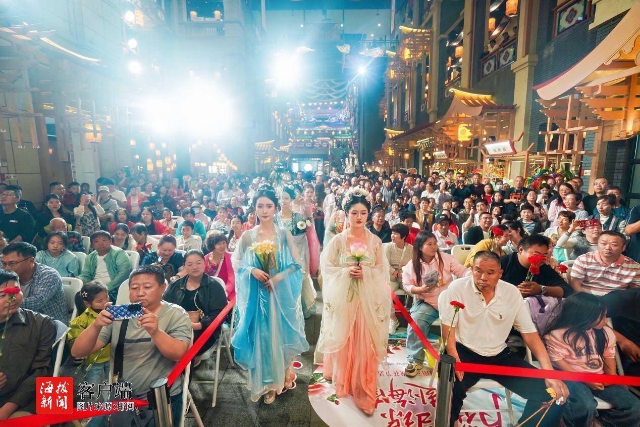 夜幕降临,换花主题活动正式开启,身着国风服饰的挑花郎与挑花仙穿行街巷,与市民游客互换鲜花、传递祝福,让“以花为媒、祈福纳祥”的传统民俗生动传承。