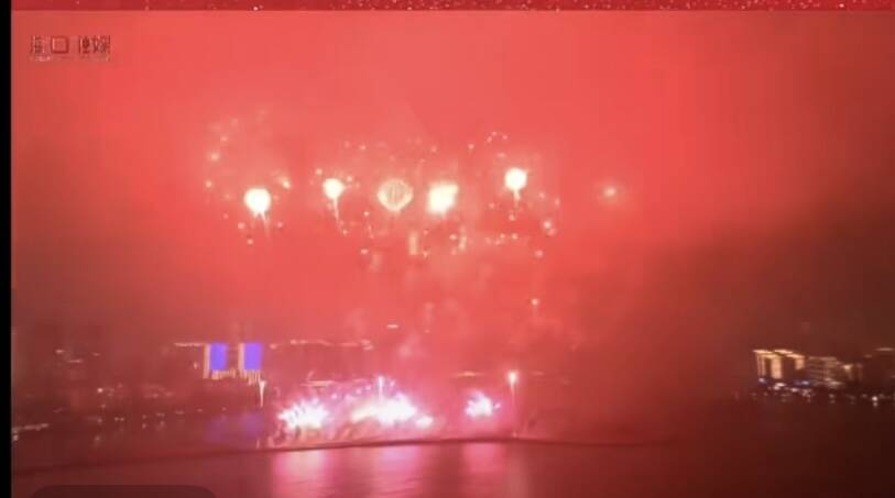 烟花秀的编排独具匠心,既有“七彩祥云”“幸福树”等传递美好祝愿的经典图案,也有“椰风海韵”“浪花朵朵”等充满海南特色的创意画面。随着音乐的起伏,烟花时而如金色瀑布倾泻而下,时而似银河流星划破夜空,配合着立体景深的设计,让观众仿佛置身于一场沉浸式的光影幻境中。