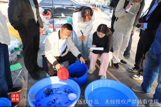 为确保放流工作科学、规范、透明,活动严格遵循《海洋牧场增殖放流技术规范》(DB 46/T 657.2-2024)相关要求。大唐海南新能源公司联合儋州市农业农村局、生态环境局、海洋海事局等主管部门,特邀海南省海洋监测预报中心、海南省海洋与渔业科学院的高级工程师组成专家组现场指导,并邀请公证机构进行全程监督验收。从苗种的检疫检验、规格核准,到投放海域的科学选定、现场操作的规范执行,构建起全流程、高标准的质量管控体系,切实保障了苗种投放的科学性与有效性。