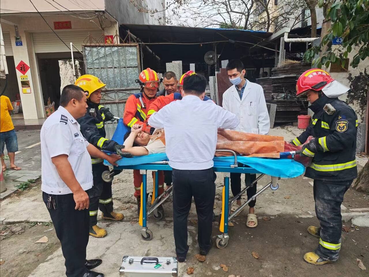 工人被建筑材料夹住 定安消防30分钟成功救援