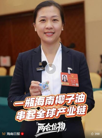 海南日报3月7日推出《两会信物》专栏文稿、视频《一瓶海南椰子油 串起全球产业链》,以海南团代表带在身上的一瓶海南椰子油为切入口,讲述了其背后的“旅程”——从东南亚的种植园出发,漂洋过海来到海南乡村工厂,再走向全国乃至全球市场,将海南自贸港“加工增值免关税”这一政策,具象化为村民触手可及的收益和企业实实在在的获得感。(点击查看更多内容)