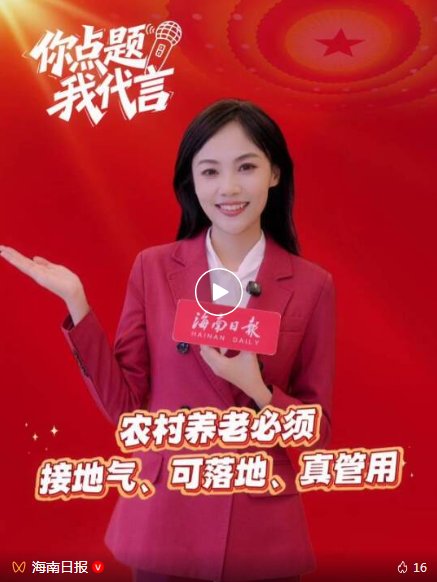 全国两会期间,海南日报推出《你点题 我代言》栏目,架起群众与代表委员沟通的“云端桥梁”。栏目贯穿会前、会中、会后全过程:会前广开言路征集建议,会中精准提问传递民声,会后及时反馈回应关切,让百姓期盼直达会场,让基层声音落地回响。作品突出“互动性”与“参与感”,以竖版短视频为载体生动呈现,让这场春天里的“双向奔赴”,成为民声与国是温暖交汇的生动注脚。