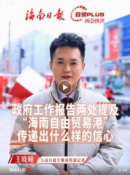 3月5日推出的《政府工作报告两处提及“海南自由贸易港”,传递出什么样的信心》视频评论反应迅速,抢抓时效,既有横向分析,也有纵向梳理,纵深分析了政府工作报告连续八年提及海南自由贸易港背后的深意,而且着重分析了今年再次提及海南自由贸易港有何不同,内容形象、生动,第一时间为观众送上了鲜活的政策解读。