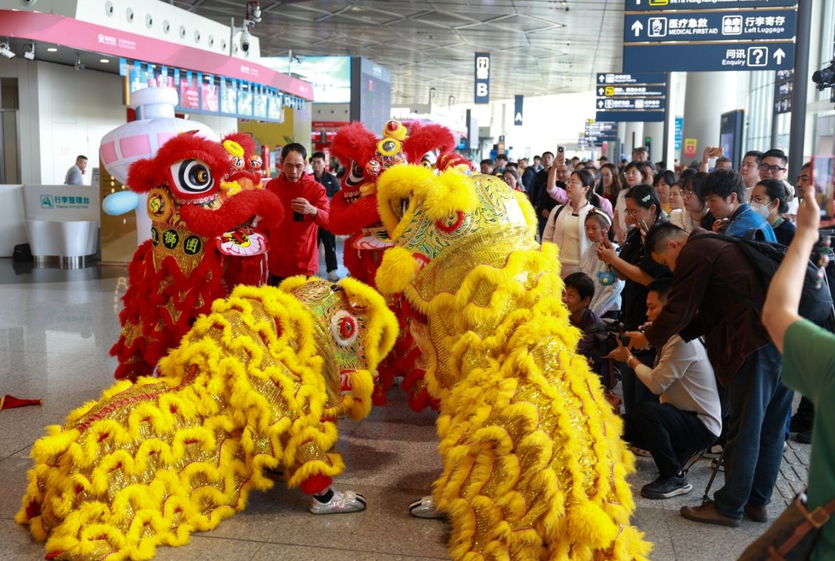 悠扬的琼剧唱腔传递着海南风情,精彩的舞狮表演让年味愈发浓郁、换花祈福送上元宵浪漫,手写春联、福字拓印、东坡文化快闪与新春巡游轮番上演……春运期间,美兰机场推出“马上游海南·乐购新春”系列人文活动,让往来海南的旅客沉浸式感受新春暖意,品味民俗文化之美。