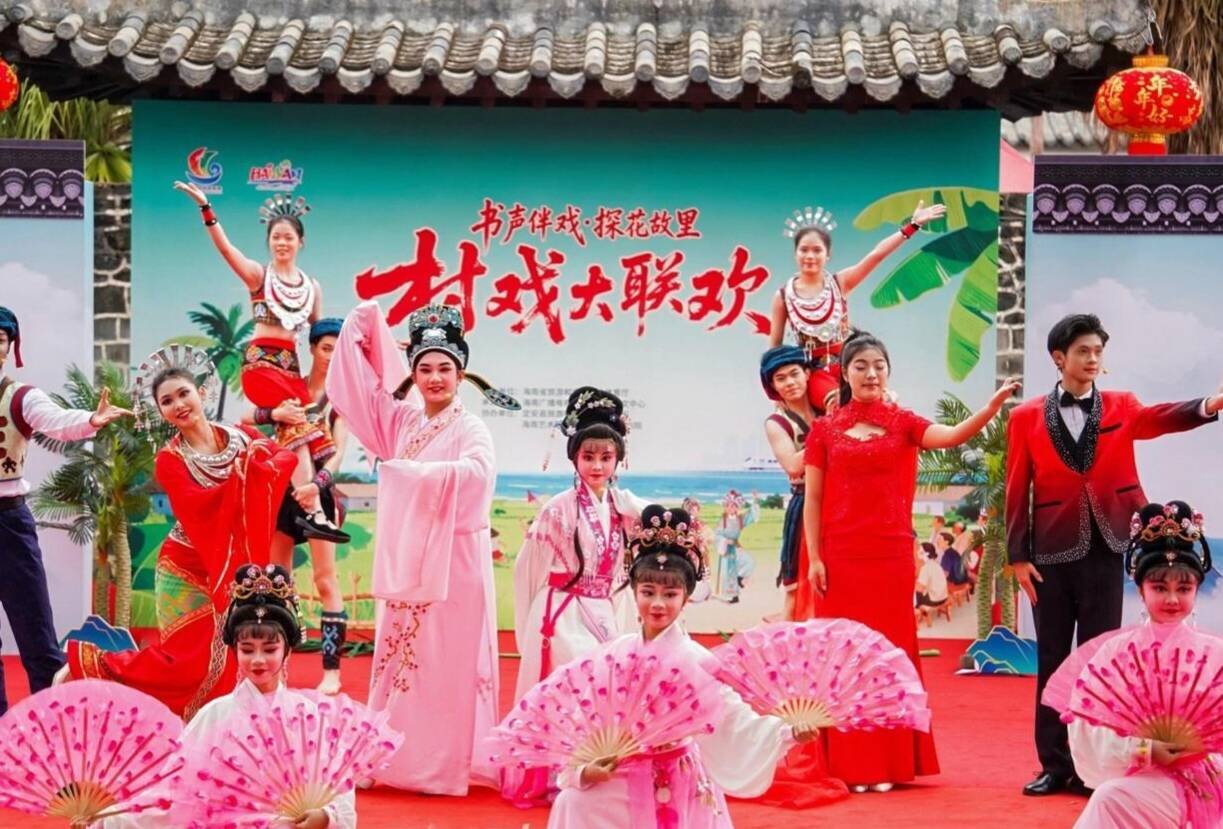 琼剧旗袍秀展现乡村文化魅力!“书声伴戏·探花故里”专场演出在定安高林村启幕