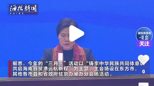 商报全媒体讯(椰网/海拔新闻记者 张艺 许文玉 摄影报道)3月17日上午,海南省新闻办公室在海口召开2026年“海南三月三·山海同心圆”活动新闻发布会。据悉,今年的“三月三”活动以“铸牢中华民族共同体意识 共启海南自贸港远航新程”为主题,主会场设在东方市,其他各市县和省政府驻京办举办分会场活动。