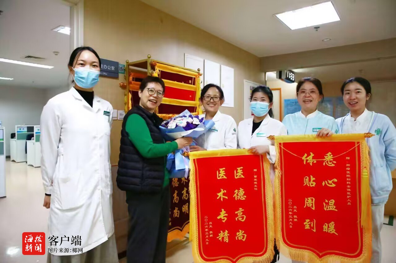 这份幸运,来自她多年坚持体检的健康意识;更来自海南省肿瘤医院环环相扣、精准高效的全程守护——从超声科医生的敏锐察觉,到曹爱娥主任团队的精湛医术,再到麻醉科团队的保驾护航以及全体医护人员的温情陪伴,将健康隐患彻底扼杀在了萌芽状态。