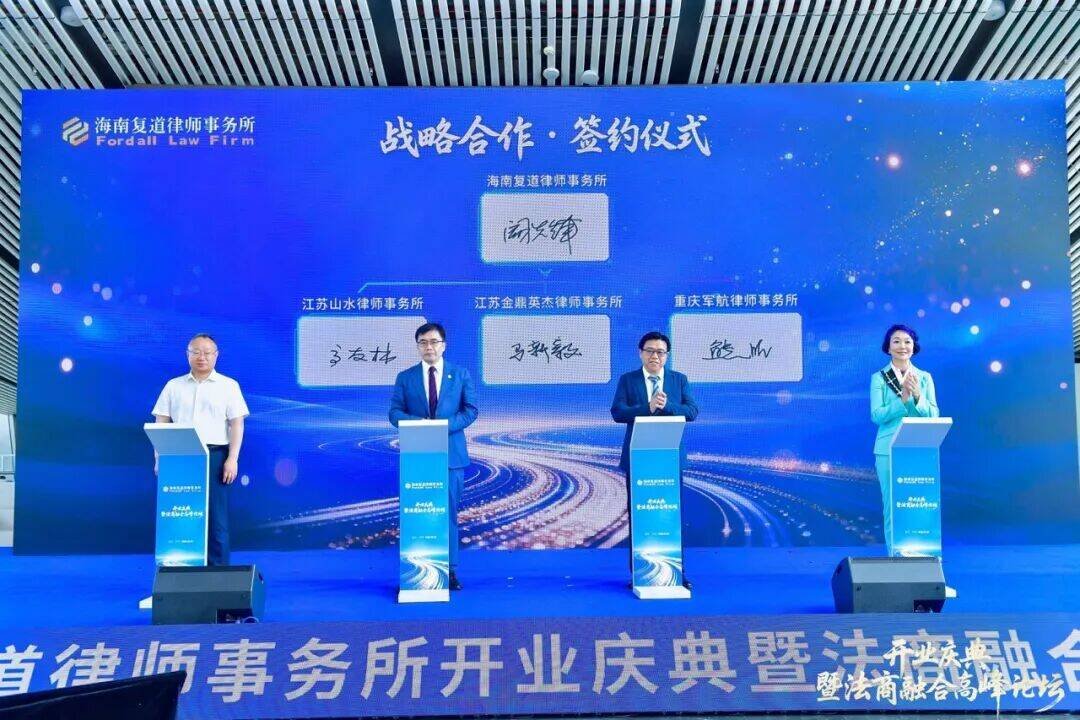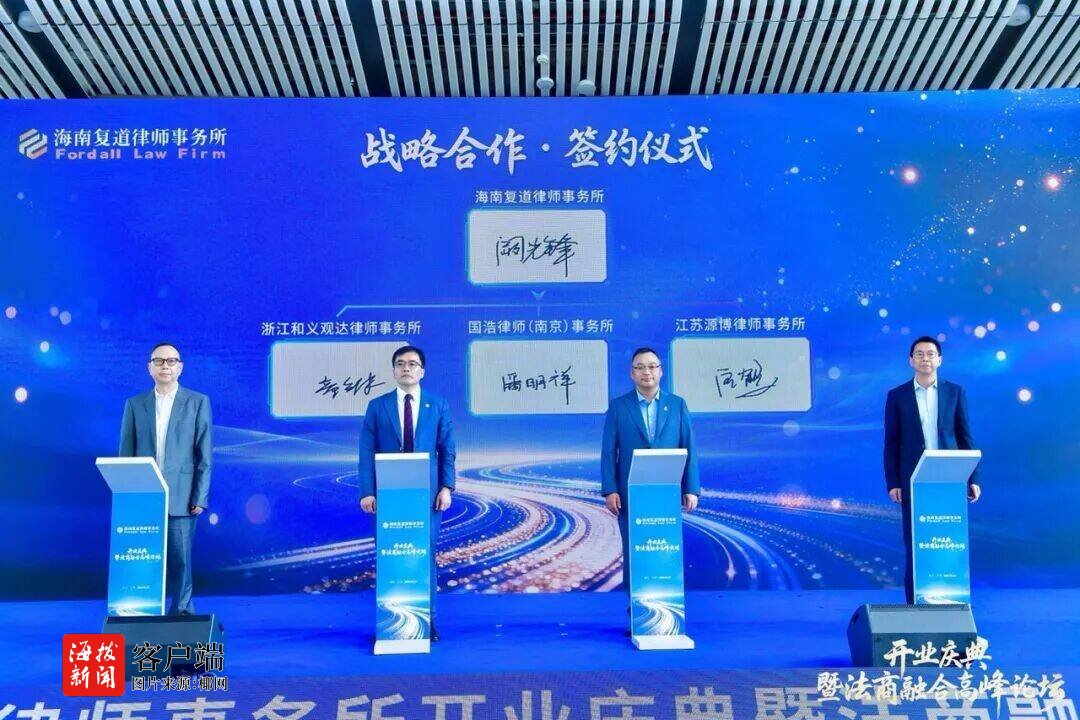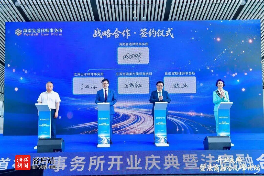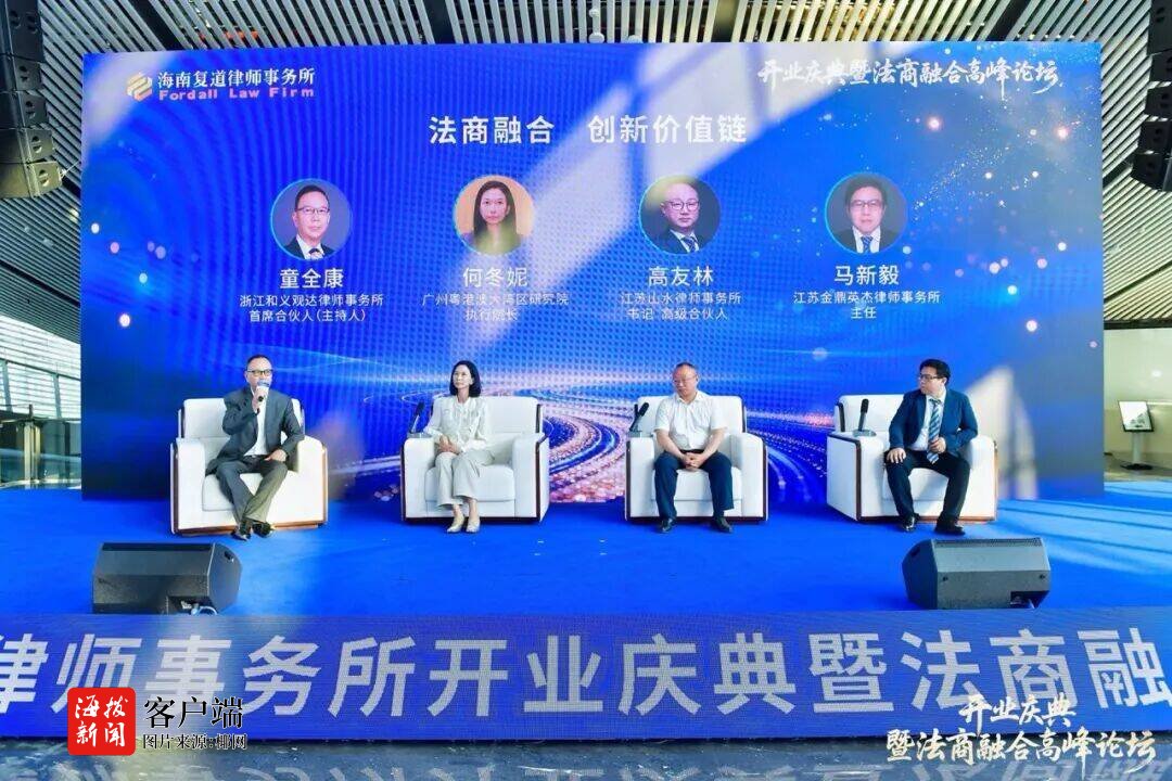 商报全媒体讯(椰网/海拔新闻记者 王辉)3月22日,海南复道律师事务所开业庆典暨法商融合高峰论坛在位于海口江东新区总部经济区(生态CBD)的江东发展大厦举办。活动由海口江东新区管理局联合中国南海研究院、海南复道律师事务所共同主办,近300位法律界资深从业者、学界专家、企业代表齐聚一堂,共同见证高端法律服务新力量落地江东新区,共商自贸港背景下法商融合发展新路径。