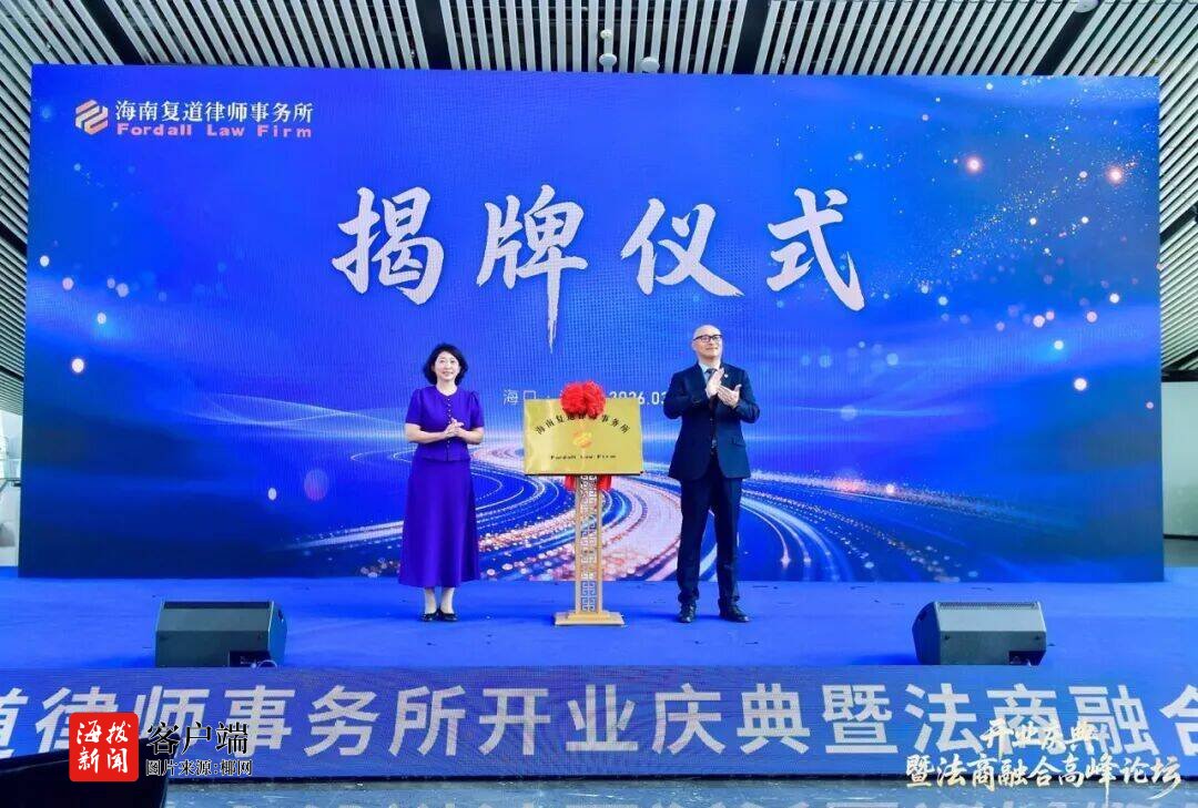 开业仪式上,海南复道律师事务所管委会主任冯辕以“连接与担当”为理念致辞,明确律所扎根江东新区、服务海南自贸港、助力法治建设与产业发展的定位。海南省律师协会会长符琼芬对其高起点、专业化布局予以肯定,期望该所在涉外法律服务、跨境商事纠纷、企业合规等领域持续深耕,为自贸港法治建设增添新动力。