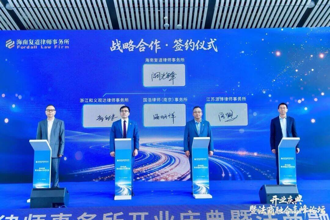 活动现场举行了合作签约仪式,海南复道律师事务所与国浩律师(南京)事务所、浙江和义观达律师事务所等6家国内顶尖律所达成战略合作。此次跨区域强强联合,不仅搭建起覆盖全国的优质法律服务联动网络,更通过资源互通、优势互补、业务协同的模式,将国内一流法律服务资源高效引入海南、落地江东,打通了内地与自贸港法律服务联动的关键通道,为各类经营主体在江东新区投资兴业提供了更全面、更专业、更高效的法治保障,持续擦亮江东新区法治营商环境名片。