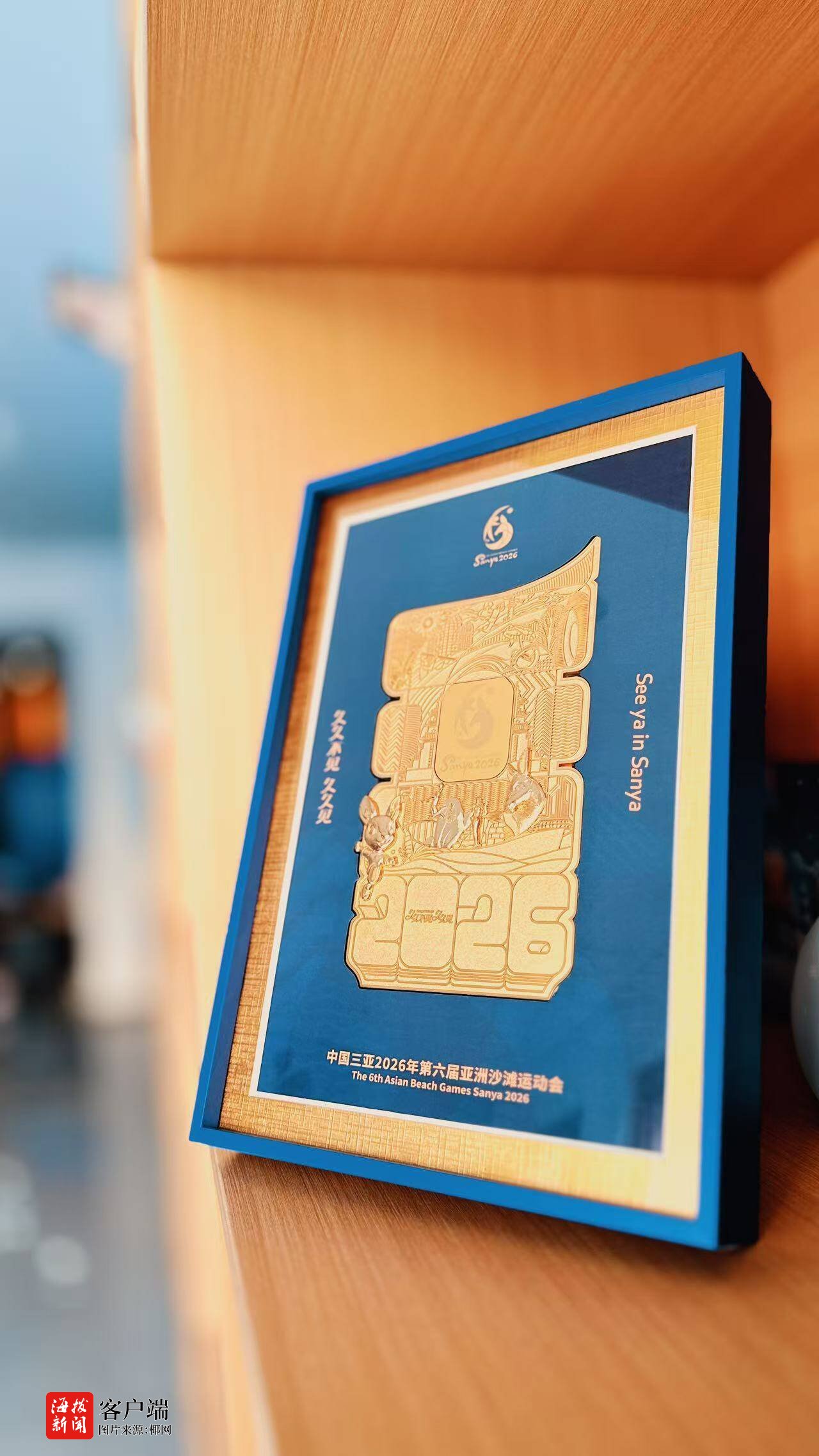 版画整体设计匠心独运,深度融合了亚沙会核心IP与三亚城市文化:画面核心位置镌刻三亚亚沙会官方会徽与“2026”赛事年份标识,辅以三亚标志性滨海风光、城市地标、沙滩运动元素与黎苗文化特色纹样,全方位展现三亚的城市底蕴与赛事魅力;作品左侧镌刻海南经典民歌名句“久久不见久久见”,尽显海南人民的热情好客与东道主情怀,右侧搭配赛事主题口号“See ya in Sanya”,向全亚洲发出来自三亚的盛情邀约。