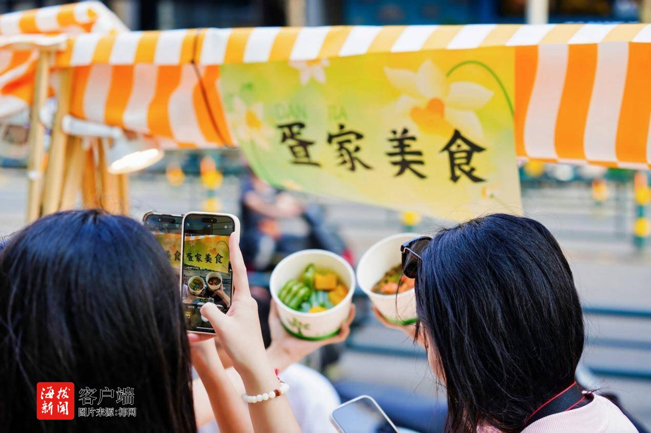 手作体验区更是欢声笑语不断,家长带着孩子在非遗传承人的悉心指导下,体验秀英剪纸、沉香香囊、东山草编的制作,小手大手一同创作,沉浸其中。美食区飘香的琼式月饼、地道疍家风味小吃,也吸引市民排起长队,争先品尝“舌尖上的非遗”。