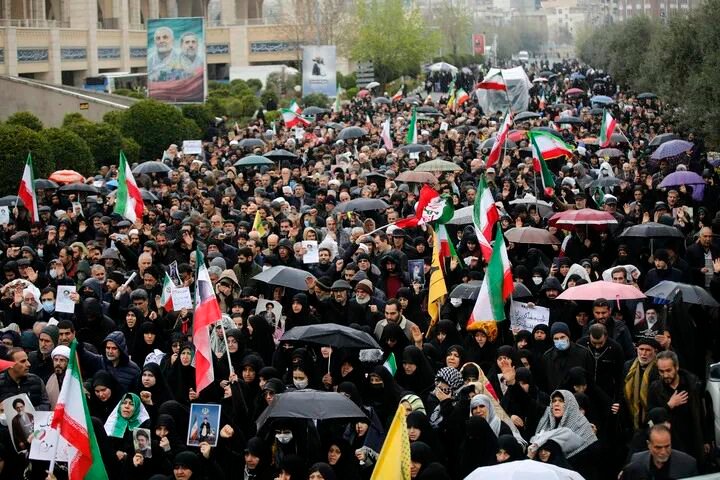 3月20日,在伊朗首都德黑兰,人们参加伊朗情报部长伊斯梅尔·哈提卜及其家人的遗体告别仪式。新华社发