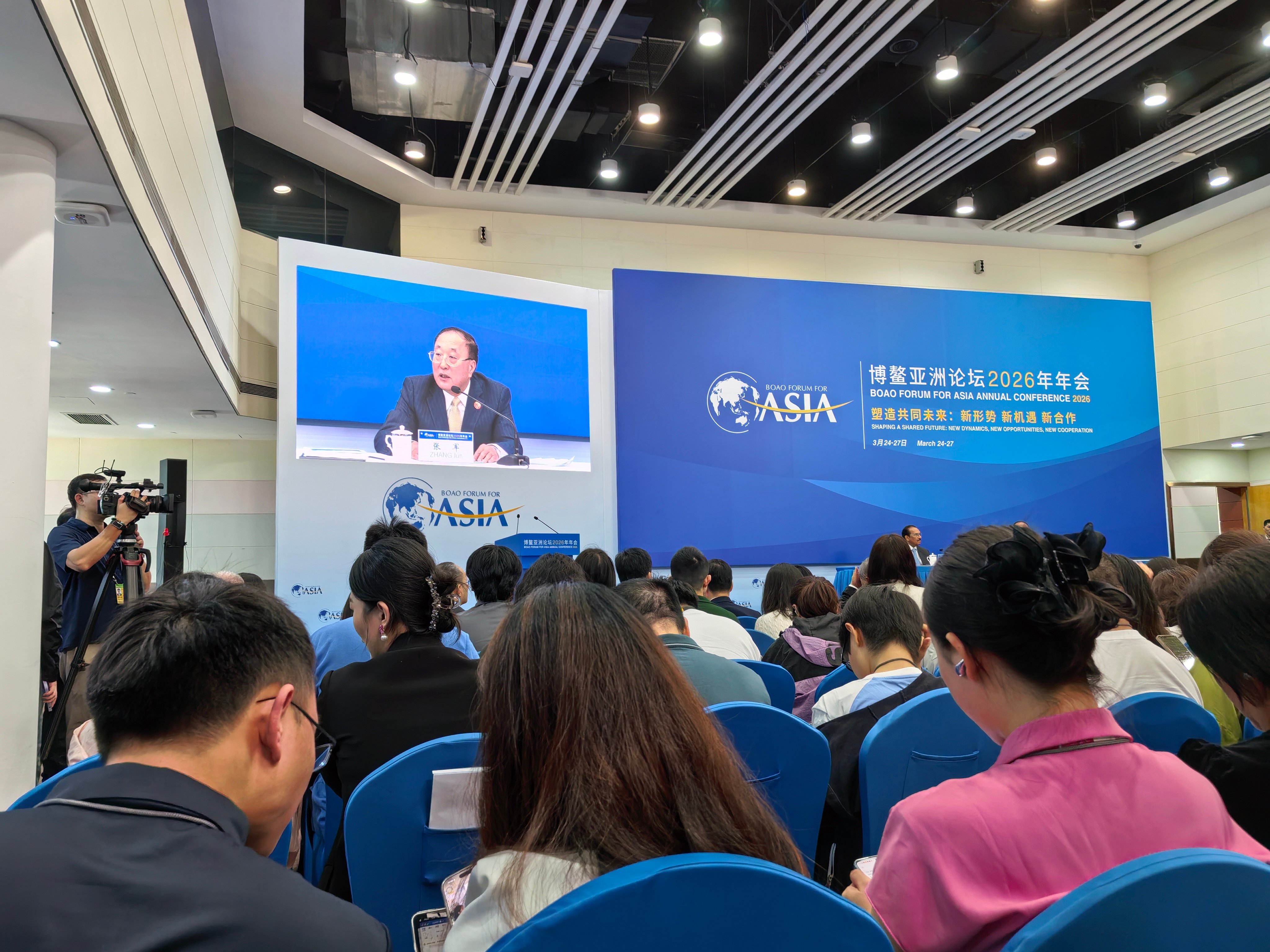 商报全媒体讯(椰网/海拔新闻记者 史若木 陈王凤 柯育超 戴铭 符式柔 摄影报道)2026年3月24日上午,博鳌亚洲论坛2026年年会举行新闻发布会,论坛秘书长张军介绍,期待通过本届年会传递这样一个信息:世界大变局既充满挑战,也蕴含新的机遇,各方要坚定信心,把握正确方向,携手应对挑战,在挑战中开创机遇,在合作中实现共赢,携手打造更加美好的未来,构建人类命运共同体。