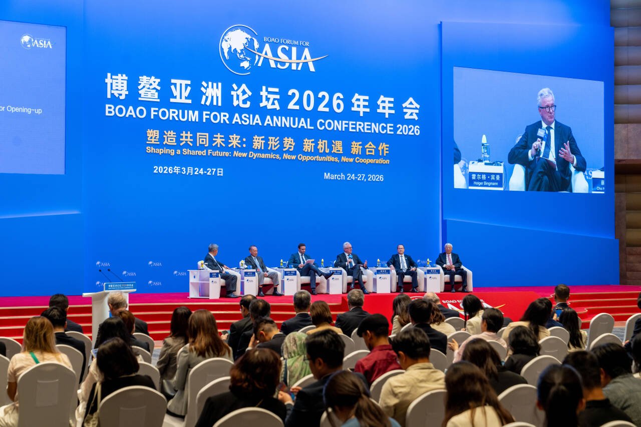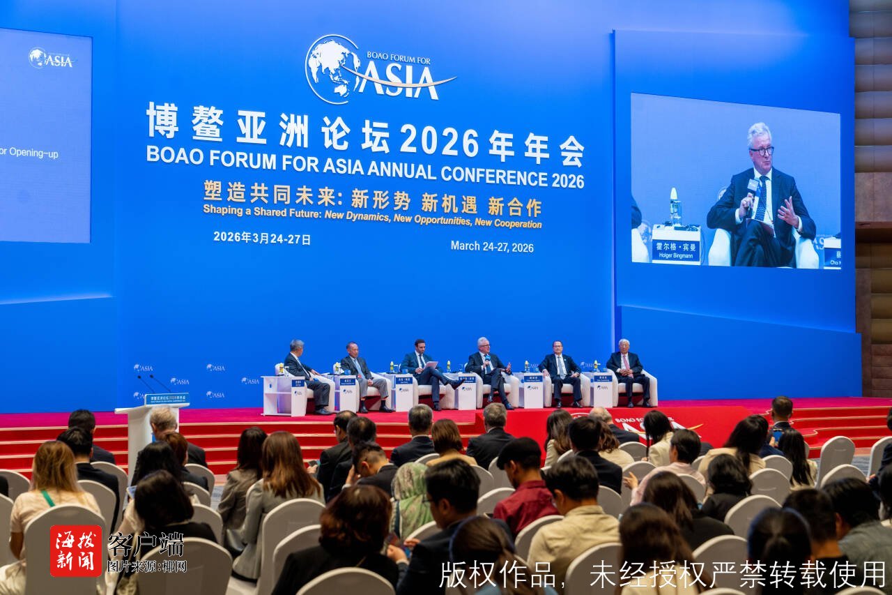 商报全媒体讯(椰网/海拔新闻记者 史若木 戴铭 陈王凤 柯育超 戴铭 符式柔 摄影报道)3月24日下午3点,博鳌亚洲论坛2026年年会全球自由贸易港发展论坛高端对话“自由贸易港:对外开放门户的机遇与使命”在BFA国际会议中心二层主会场举行。国际商会执行理事会副主席霍尔格·宾曼是高端对话嘉宾,在对话中霍尔格·宾曼说他是海南的忠实粉丝。