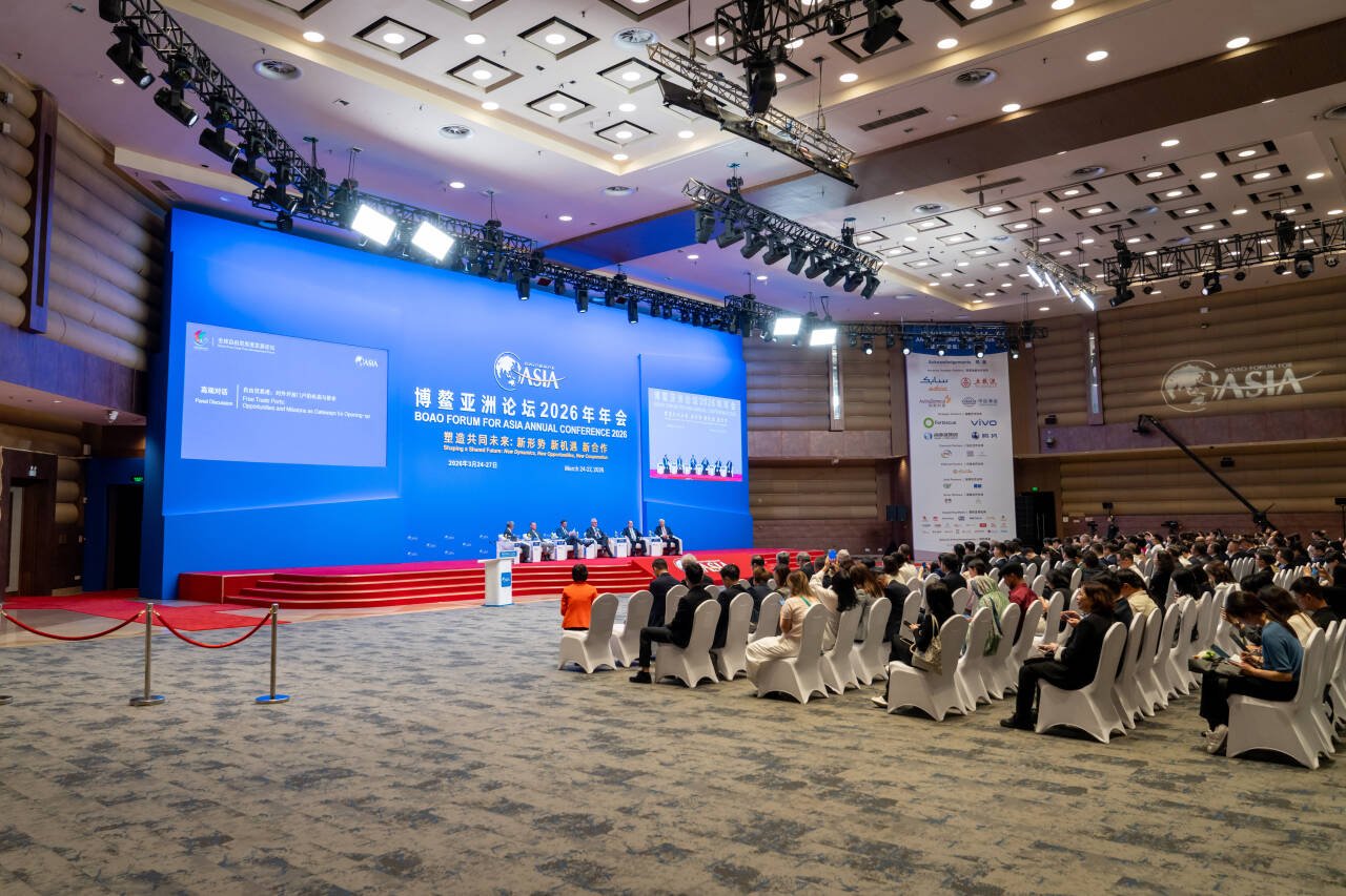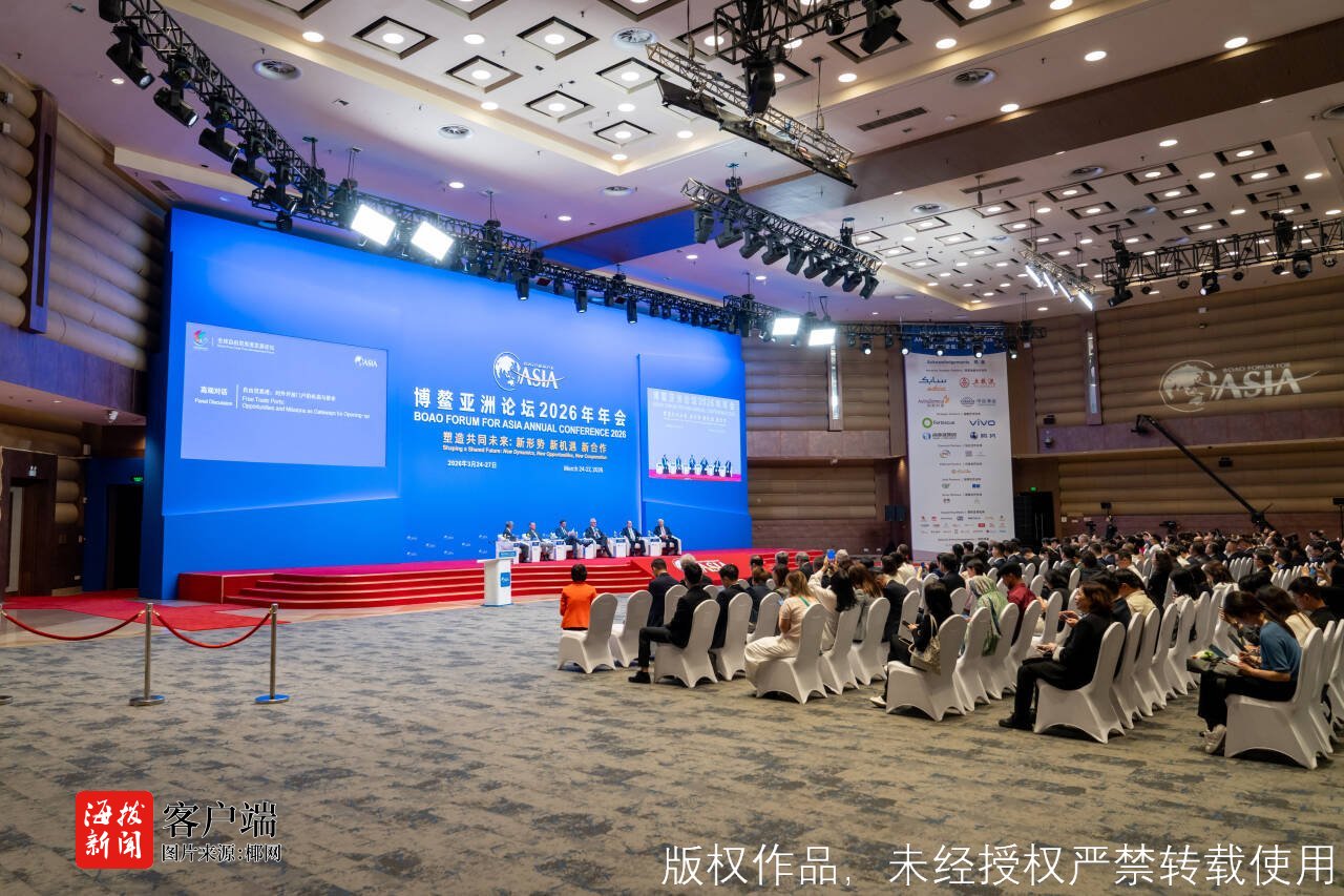 商报全媒体讯(椰网/海拔新闻记者 史若木 戴铭 陈王凤 柯育超 戴铭 符式柔 摄影报道)3月24日下午3点,博鳌亚洲论坛2026年年会全球自由贸易港发展论坛高端对话“自由贸易港:对外开放门户的机遇与使命”在BFA国际会议中心二层主会场举行。香港中华总商会主席蔡冠深是高端对话嘉宾,在对话中他强调海南地理位置优越,一小时即可抵达越南,从“天涯海角”变为面向东盟的“前门”。