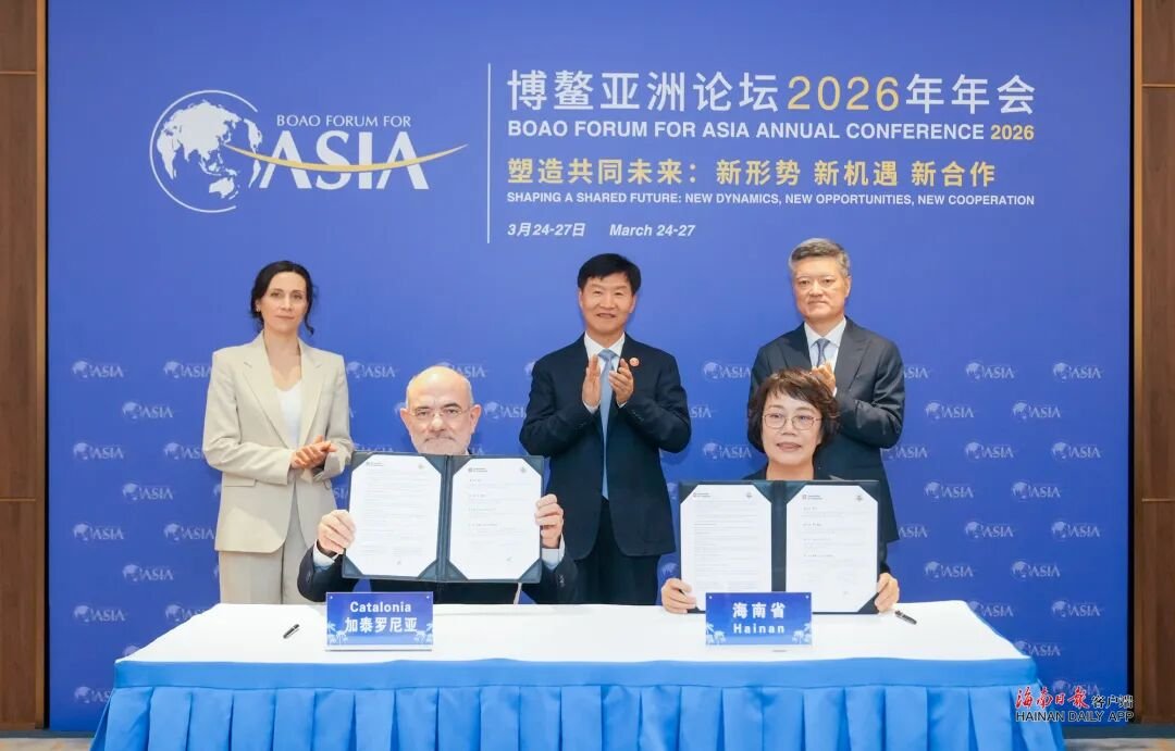 3月24日,省政府与西班牙加泰罗尼亚自治区政府在博鳌签署合作谅解备忘录。省长刘小明,西班牙加泰罗尼亚外事厅厅长豪梅·杜齐出席签约仪式。
