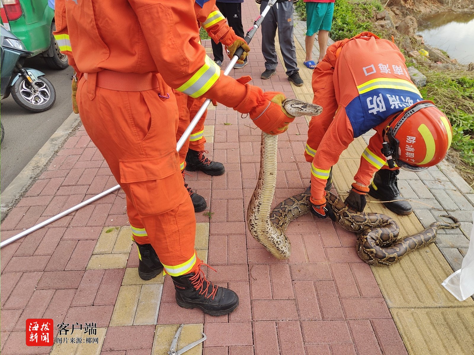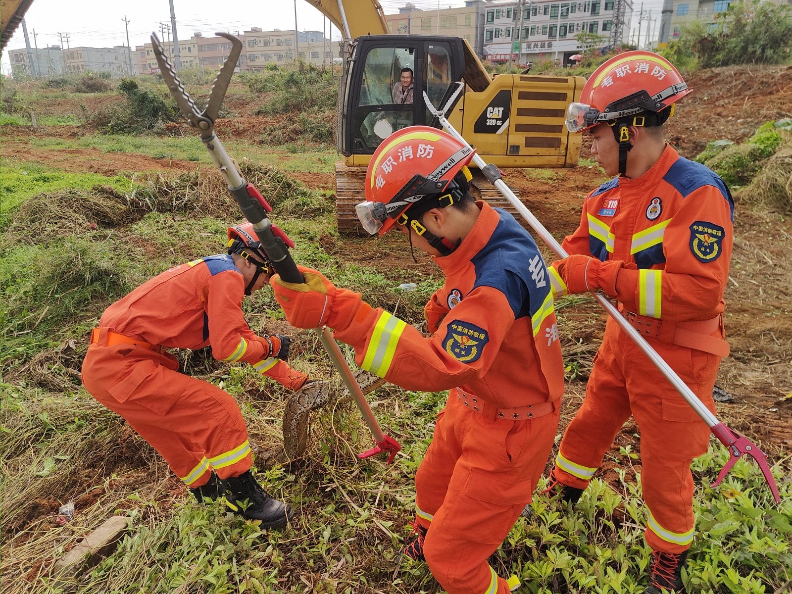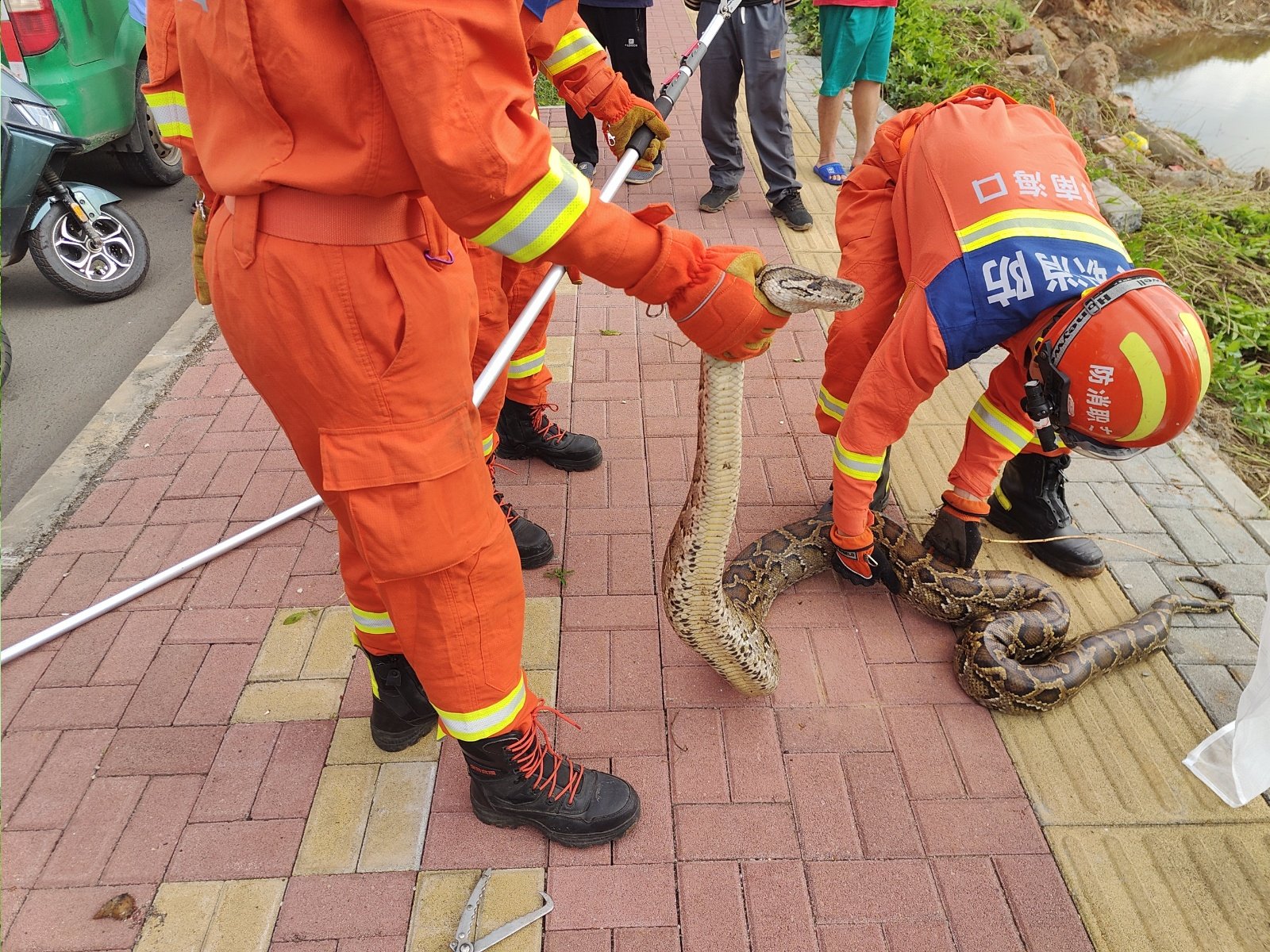 施工空地惊现蟒蛇 海口龙华消防快速处置