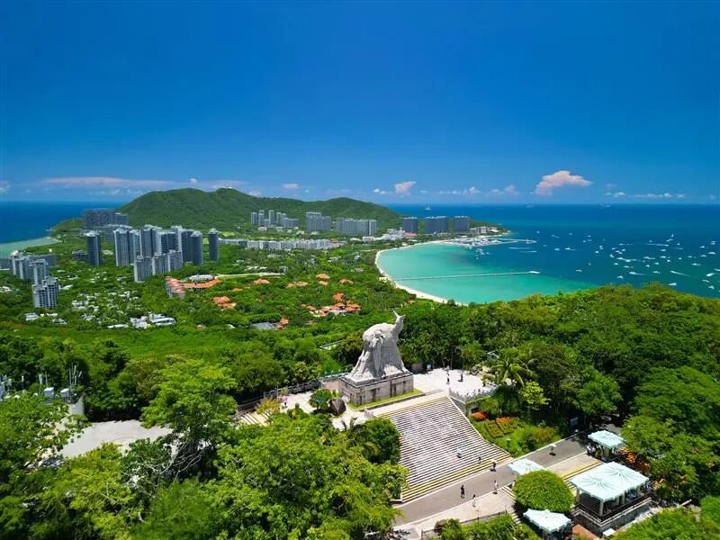 这里三面临海,流传着海南坡鹿化身的仙女与黎族青年猎手共结缘的美丽传说,寓意三亚人自强不息、奔跑逐梦的奋斗精神,三亚的别称“鹿城”因此得名,三亚亚沙会吉祥物“亚亚”的形象也取自这里。