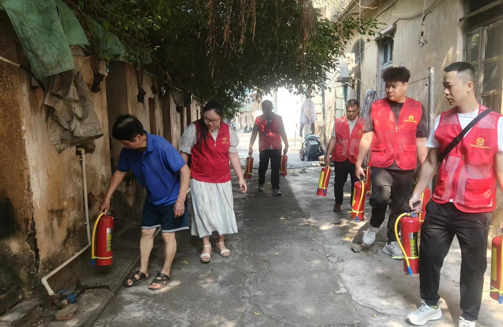 近日,在海秀街道工委的统筹指导下,东方洋社区党总支针对辖区7个“三无小区”消防器材老旧破损、消防安全存在隐患的痛点,统一购置320余具灭火器配发到楼栋,用一抹抹亮眼的“安全红”为居民撑起平安“保护伞”。