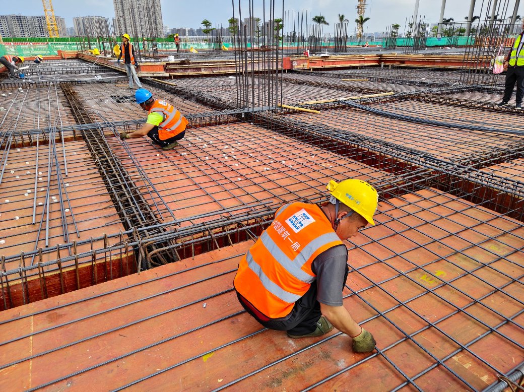 “在建设过程中,针对项目开挖深、面积大、地下水丰富、降水难度高等特点,项目团队采用钢板桩+预应力锚索支护体系,搭配管井降水与明沟排水双重控水工艺,有效控制基坑变形与地下水涌渗水。从支护施工到结构顶板施工,全过程实施第三方基坑监测、实时数据分析、及时预警处置,在受限场地内实现安全高效开挖,保障地下室结构质量与安全。”中建一局项目负责人介绍。