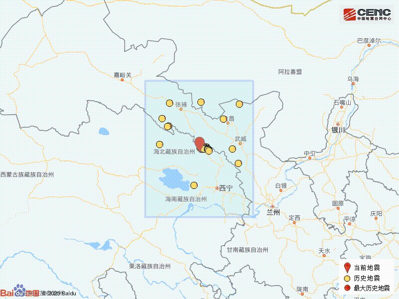 历史地震:根据中国地震台网速报目录,震中周边200公里内近5年来发生3级以上地震共64次,最大地震是2022年1月8日在青海海北州门源县发生的6.9级地震(距离本次震中11公里),按震级大小前50次历史地震分布如图。
