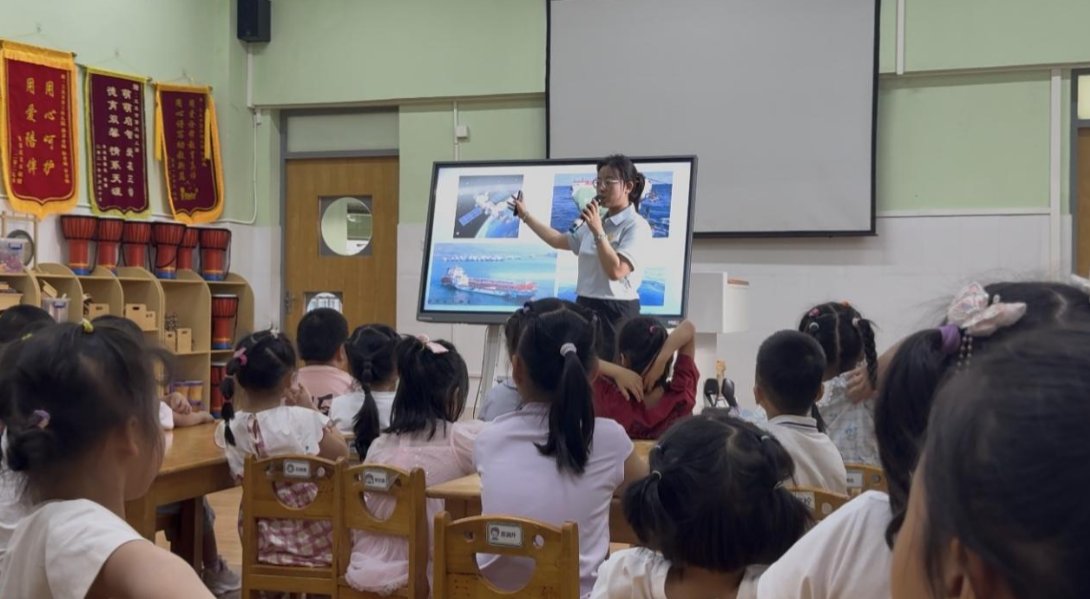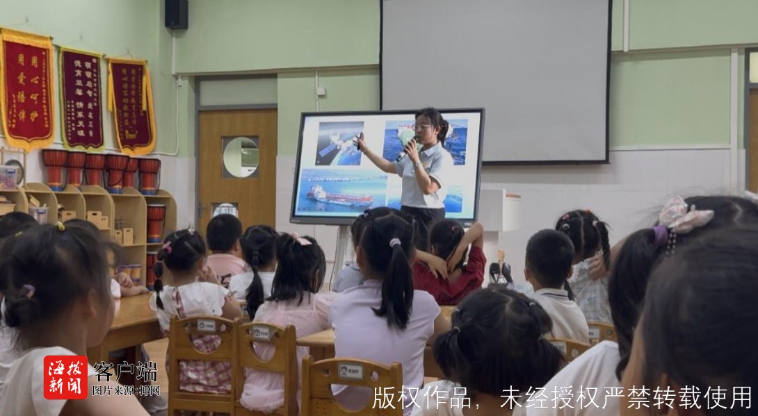 海洋故事环节,科普人员围绕《更路簿》展开生动讲解,并同步播放《更路簿》主题AI科普视频,直观阐释这部海南渔民传统航海典籍的功能与价值。同时将传统观星辨向、识水流深浅等古老航海智慧,与北斗卫星导航、“奋斗者”号深潜等现代海洋科技成果进行对比,让幼儿直观感受中国海洋事业的蓬勃发展。随后开展的“小小航海家”定向互动游戏,将方位辨识、避险应对等航海常识融入趣味互动,进一步强化幼儿的海洋知识理解与实践体验。