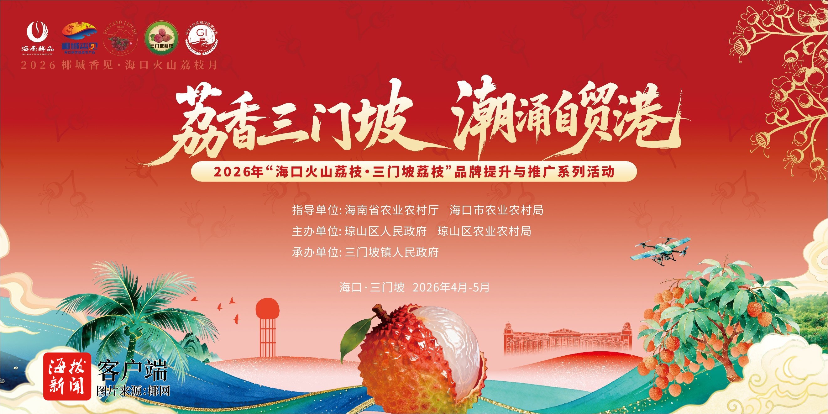 商报全媒体讯(椰网/海拔新闻记者 王辉)为进一步提升“三门坡荔枝”品牌影响力,擦亮国家地理标志产品金字招牌,推动荔枝产业与文旅、体育、音乐等多元业态深度融合,由琼山区人民政府、琼山区农业农村局主办,三门坡镇人民政府承办的2026年“三门坡荔枝”品牌提升与推广系列活动,将于2026年4月至5月在三门坡镇精彩上演。