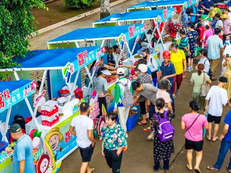 内容:集中展销三门坡荔枝鲜果、荔枝加工品、文创产品、地方美食及手工艺品,设置互动体验区、拍照打卡装置,为游客提供“可逛、可吃、可拍、可带走”的一站式荔乡消费体验。