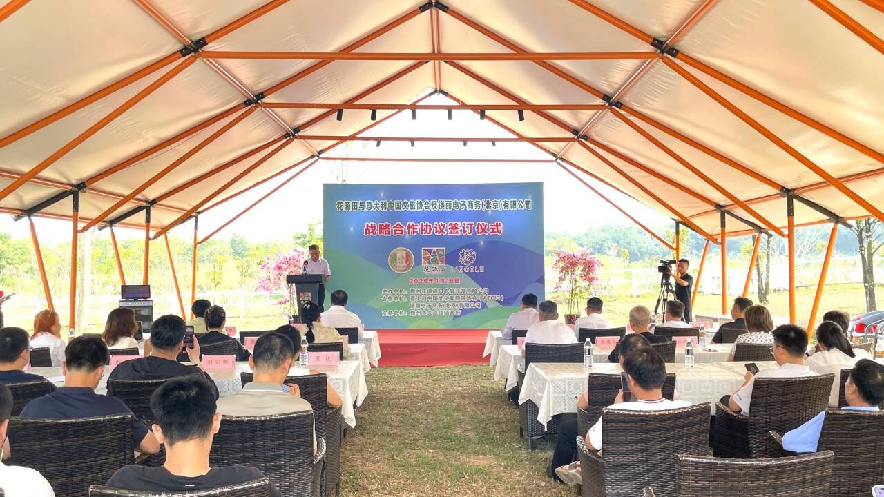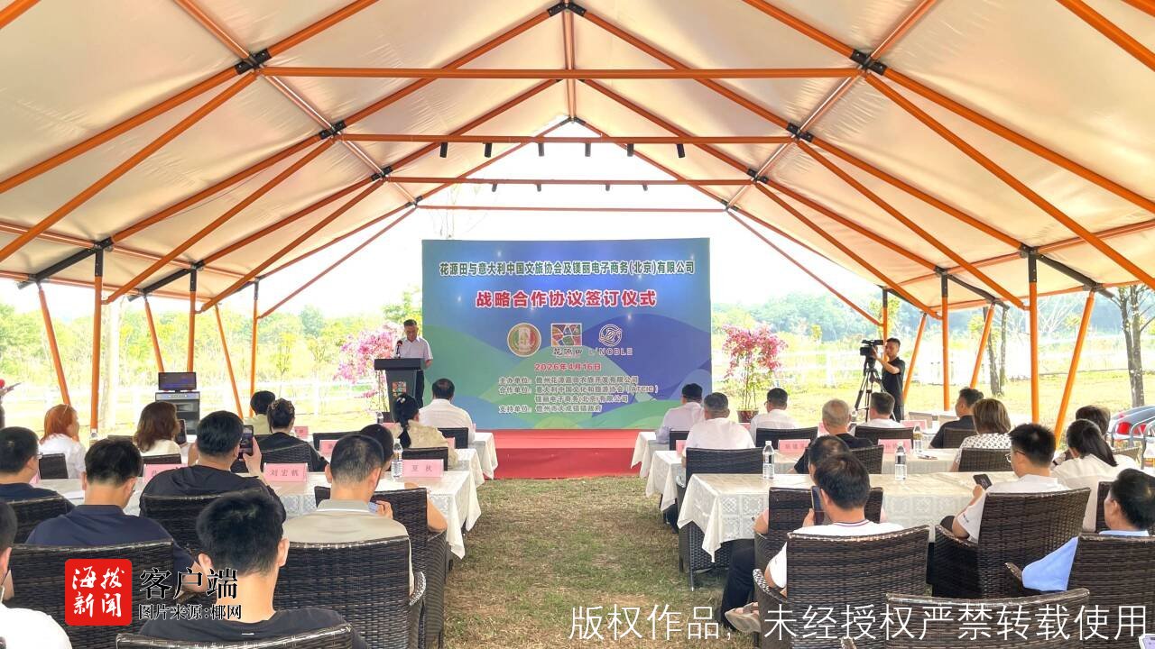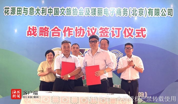 商报全媒体讯(椰网/海拔新闻记者 黄桂风 摄影报道)4月16日,儋州市大成镇调南村千亩花源田农旅产业园内,一场跨越东西方的农文旅战略合作签约仪式正式举行。儋州花源嘉田农旅开发有限公司与意大利中国文化和旅游协会、镁丽电子商务(北京)有限公司签署三方协议。此次签约聚焦高端文旅、精品农业、意大利特色产品及美酒文化等领域,标志着海南自贸港封关运作背景下,儋州积极引进国际资源、推动产业升级迈出实质性步伐。